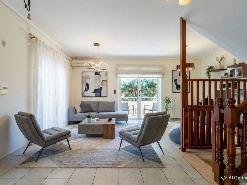 Discover one of our new exclusive properties: a unique four-level maisonette spanning 194 sq.m., located in a quiet and elegant complex of maisonettes build in 2004. This residence combines comfort, functionality, and sophistication on every level, offering a complete living experience for families. The ground floor 65 sq.m. features a spacious area that can be used as a playroom, living room, or bedroom. A bathroom, and an additional comfortable bedroom with direct access to the garden is ideal for hosting guests or as a private personal space. On the first floor 60 sq.m., the main living area opens into a bright, open-plan living and dining space with a fully equipped kitchen, creating the perfect environment for everyday life and entertaining. The second floor 60 sq.m. comprises three bedrooms. The master bedroom includes an ensuite bathroom and walk-in wardrobe, while the other two rooms offer flexibility, with one already functioning as an office, complemented by a second bathroom on the floor. The rooftop 65 sq.m. provides the ultimate relaxation space with breathtaking panoramic views, making it an ideal area for leisure and enjoyment. This residence stands out for its high-quality construction, functional design on every level, and the unparalleled panoramic views from the rooftop, offering a complete and comfortable living space ready to welcome its new family. Location: Porto Rafti is located 7 km east of Markopoulo, on the southern shores of the South Euboean Gulf, and to the north, it borders Athens International Airport. It is approximately 40 km away from the capital. The bay of Porto Rafti includes 3 islands (Rafti, Raftopoula, Praso) and extends from Erotospilia to Avlaki. Unique Features: Today, Porto Rafti is one of the most famous summer resorts in Eastern Attica, offering natural beauty with its beautiful beaches and crystal-clear waters. The area also offers a variety of water sports activities. Additionally, Porto Rafti is known for its rich history, including the famous archaeological site of Vravrona with its renowned ancient temple. Porto Rafti boasts a large selection of cafes and small taverns popular for their seafood. Lastly, the small port of Porto Rafti is a gem and an ideal place for seaside walks. Accessibility: Access to Porto Rafti is facilitated by the Attiki Odos, the coastal boulevard, and the neighboring metro and suburban stations at "Koropi". Investment Potential: Due to its rich natural beauty, being one of the most popular tourist resorts near Athens, and its relatively close proximity to the city, Porto Rafti has become attractive to real estate investors as property prices offer a good return on investment.