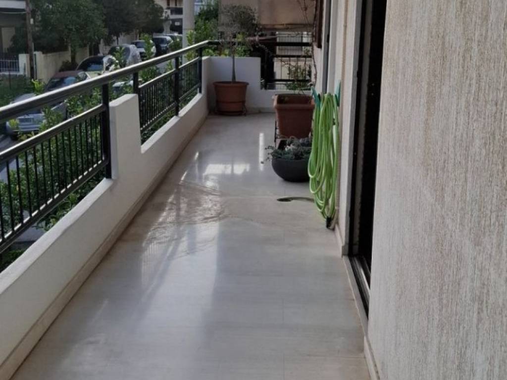 103 sqm whole-floor apartment, dual-aspect, 1st floor, ideal for a family. The property features a large wraparound balcony, offering an unobstructed view and abundant natural light. Kitchen: Separate and functional. Bedrooms: 2 comfortable bedrooms. Extra Space: Specially designed small office area with a built-in wardrobe (ideal for work-from-home). Bathrooms: 1 main bathroom and 1 WC. Heating: Autonomous oil heating. Year of construction: 1990. Renovated in 2020: Electrical and plumbing installations, kitchen, bathroom, WC, wardrobes, and floors. Location: Immediate access to schools, sports activities, and the market. Note: The location on the map is indicative. Contact hours: Monday to Friday 17:00 - 20:00.