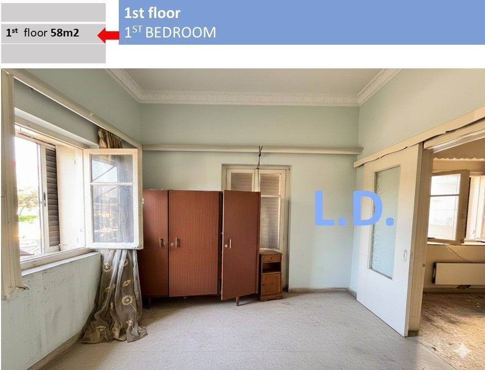 Piraeus, Hadjikyriakeio, 200m from the sea. Investment property. Detached house 131m2 on a plot (corner) 112m2, with a total building capacity of 336m2. Requires renovation. On 3 levels - Ground floor - 1st floor & 2nd floor. It has three (3) Bedrooms + Kitchen + (2) Bathrooms and a large veranda-terrace. With the possibility of constructing an apartment building of an estimated size of up to 336 m2 with 5 - 6 apartments, with a floor area of 3, a floor area of 60%, a maximum height of up to 30 m. On a plot of 113 m2 with an existing detached house. On 36 KLEISOVIS Street. Exclusive property of the real estate company L.Development, Tel. Contact: 2109622724