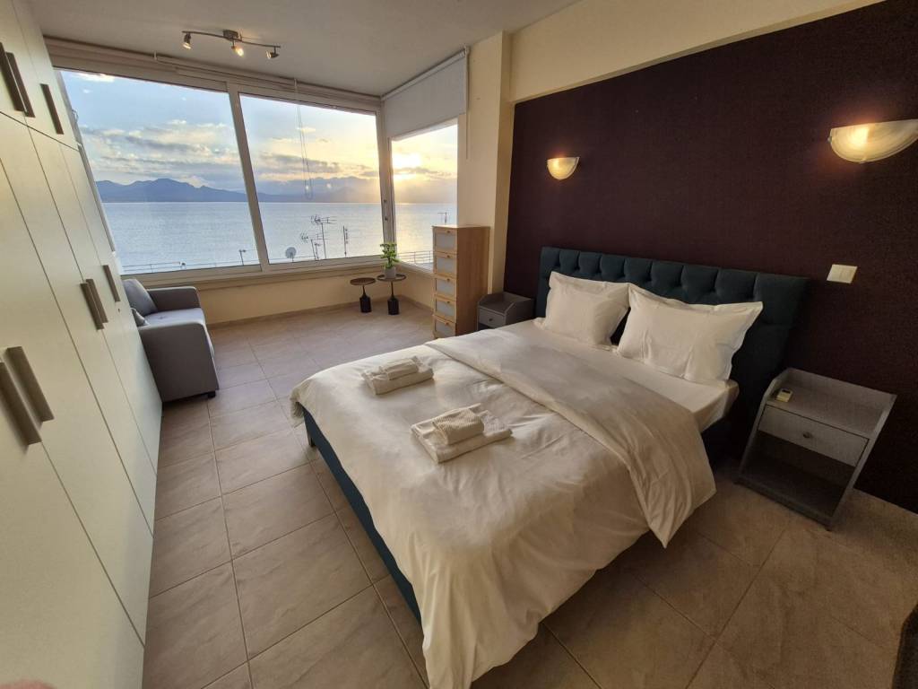 Two-Level Apartment with Breathtaking Sea View Fully furnished and equipped two-level apartment for rent, accommodating up to 6 guests, just 5 minutes from Loutraki by car. Located in a quiet area within a seaside complex that features a private beach right below — perfect for relaxation and tranquility. The apartment includes: One bedroom with a double bed One sofa bed on the upper level (sleeps 2) One sofa bed on the lower level (sleeps 2) A fully equipped kitchen with brand-new appliances Air conditioning, Wi-Fi, and all modern amenities Available for long-term rental or short stays. All furniture and appliances are brand new. Enjoy a truly magical view of the endless blue sea — the ideal choice for families or groups seeking peace, comfort, and natural beauty just a short drive from Loutraki.