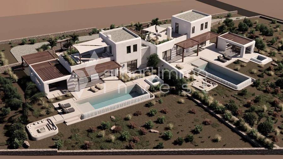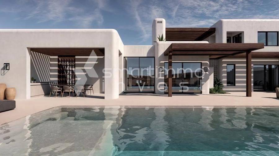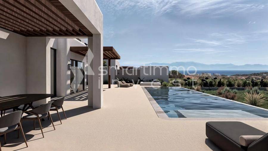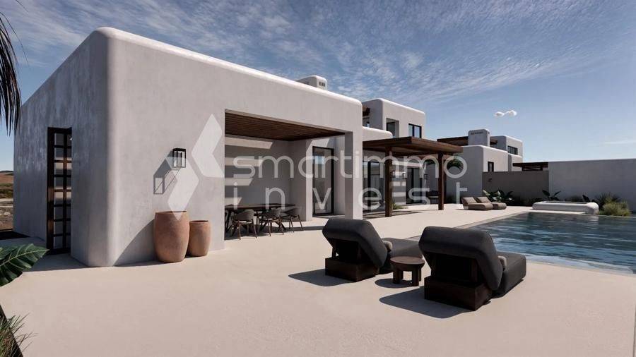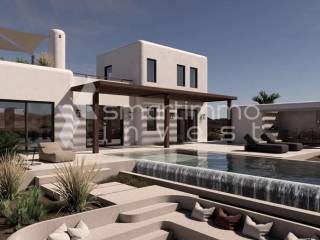 Modern 125 sq.m. villa for sale in Kastraki, Naxos — newly built in 2026 with energy class A. The property includes 2 bedrooms, a living room, an open-plan kitchen, 3 bathrooms plus an additional WC, a playroom and an internal staircase connecting the levels. It’s an ideal choice for permanent residence, an investment opportunity or professional use in a quiet residential area. The design is contemporary with large verandas, perimeter pergolas and a roof garden as shown in the photos. There is an overflow pool and a semi-sunken outdoor seating area. Ample parking is provided with a covered carport, plus a storage room, a BBQ/outdoor kitchen for entertaining and a garden with simple Mediterranean planting. Frames are aluminum with double glazing and insect screens; floors are tiled; the building is painted; there is a fireplace in the living room and air conditioning in all rooms. Security features include a security door, an alarm system and satellite connection, and there is an electric car charger on the property. Special emphasis on autonomous electric heating with underfloor heating, with the possibility to use night-rate electricity for savings. The house is bright, has through-ventilation and a frontal exposure, oriented west-southwest, offering unobstructed views and impressive sunsets from the main verandas. Newly built and luxurious yet with clean lines, it’s suitable for living or renting, with modern amenities such as a solar water heater and heating/cooling systems. About Kastraki, Naxos: Kastraki is a quiet neighborhood on Naxos with Cycladic character and a clean aesthetic, close to beaches and the island’s basic infrastructure. The area offers a peaceful environment — ideal for those seeking quality of life with easy access to tourist activities. Access to the property is via a dirt road connecting to the main road network, ensuring privacy and low traffic. A good option for investors due to rental and tourism demand, and also for families looking for a modern home with views and open outdoor spaces.