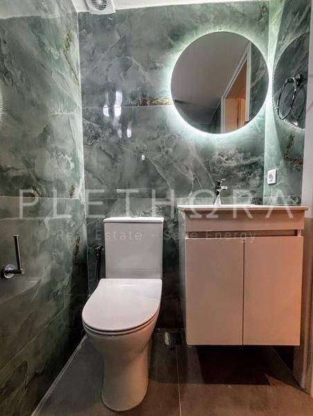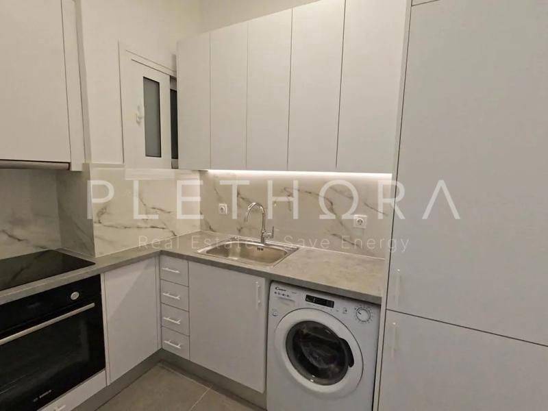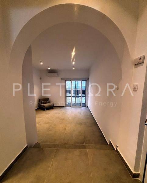 Palea Fokea, Centre - Flatlet 35sqm fully furnished, bedroom, upper floor (1 bedrooms, living room, kitchen, bathroom), renovated, year built 1970, renovation year 2024, energy class G, living room, kitchen, bathroom, air condition, frontage, painted, balconies, loft storage, built in appliances, aluminum frames, double glazed windows, door screen, ceramic tiles floors, separate kitchen, secure door, alarm, within city plan, residential zone, south-western orientation, access from asphalt, close to bus stop (up to 200m), close to market (up to 200m), close to sea (up to 200m).