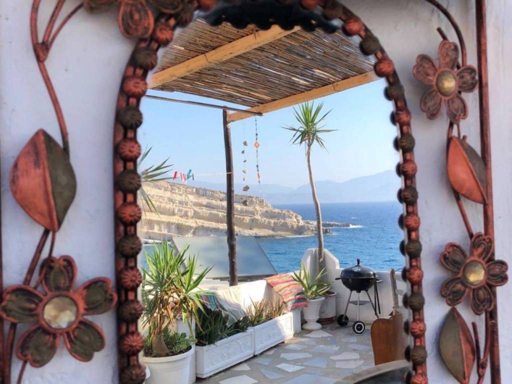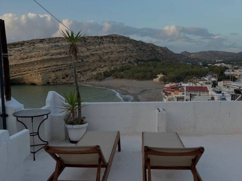 A stone house/cave of 33,16 sq meters, a bathroom/shower in a separate building, with three outside terraces 116,30 sq m • Clear bay view • Iconic cliff visibility • Sunset orientation • Elevated position • Immediate walkability Used to be a bar in 1990s, then an Airbnb property. • 2 minutes walk to Matala Beach • 3 minutes walk to village square • Direct elevated sea view • Within settlement & touristic zone • Fully legal, no encumbrances • Renovated, habitable structure • Proven short-term rental history (superhost, guest favorite statuses) • Expansion potential