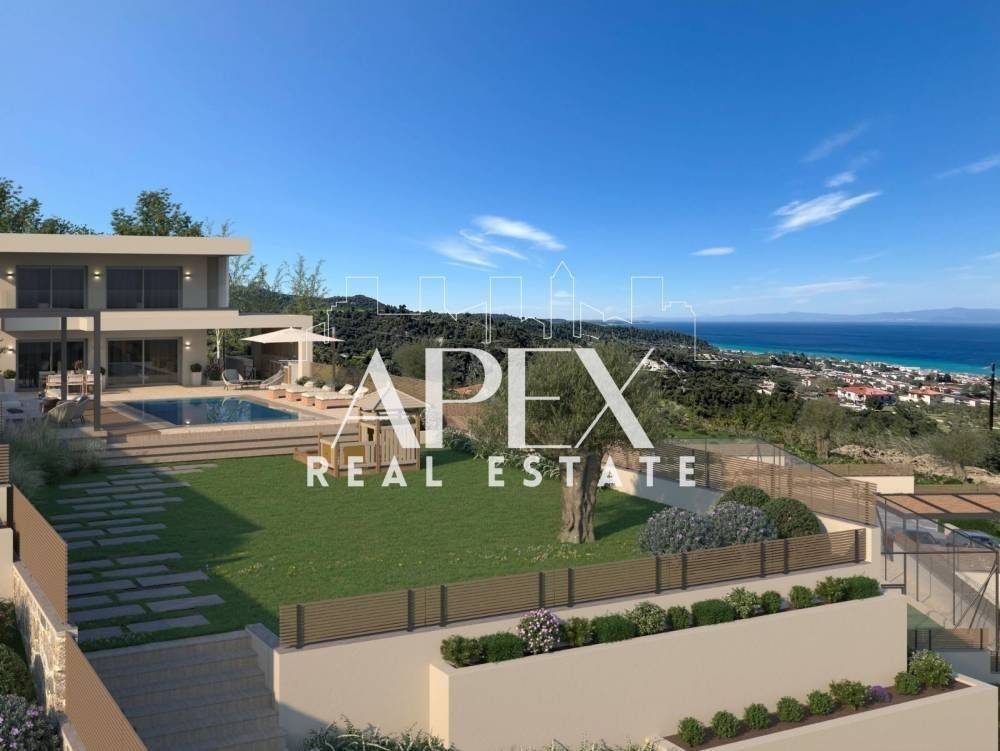 Luxuriously newly built villa 230sq.m. (net) with unobstructed view of the sea of Toroneos gulf, built on a 1500sq.m. plot. It is developed on three levels, has four spacious master bedrooms, a bright open plan kitchen with living room and five bathrooms. It has large verandas, private pool, garden and tennis court, BBQ area, security door, double glazed windows with mosquito nets and covered parking spaces. It is situated in an ideal location, close to sandy beaches with crystal clear waters, beach bars and restaurants.