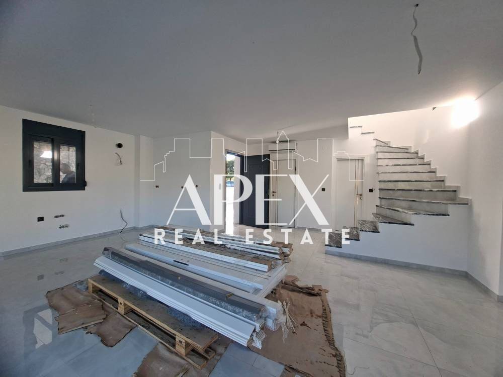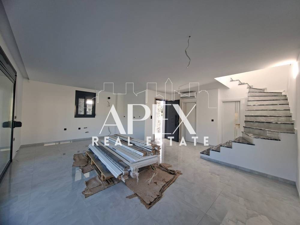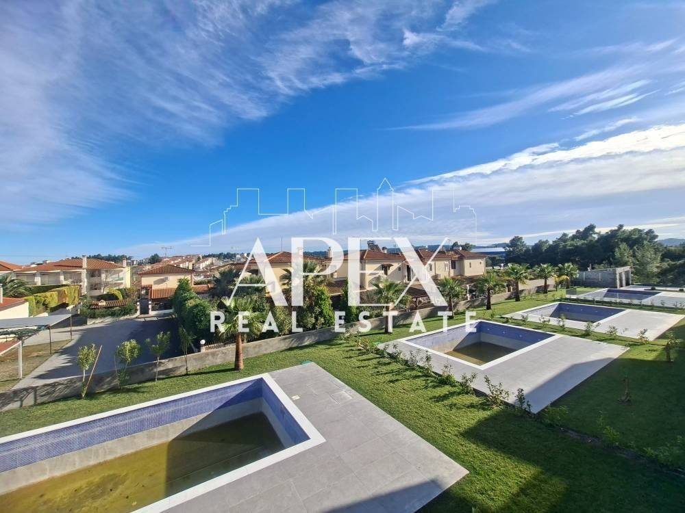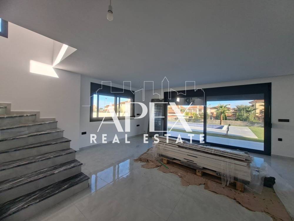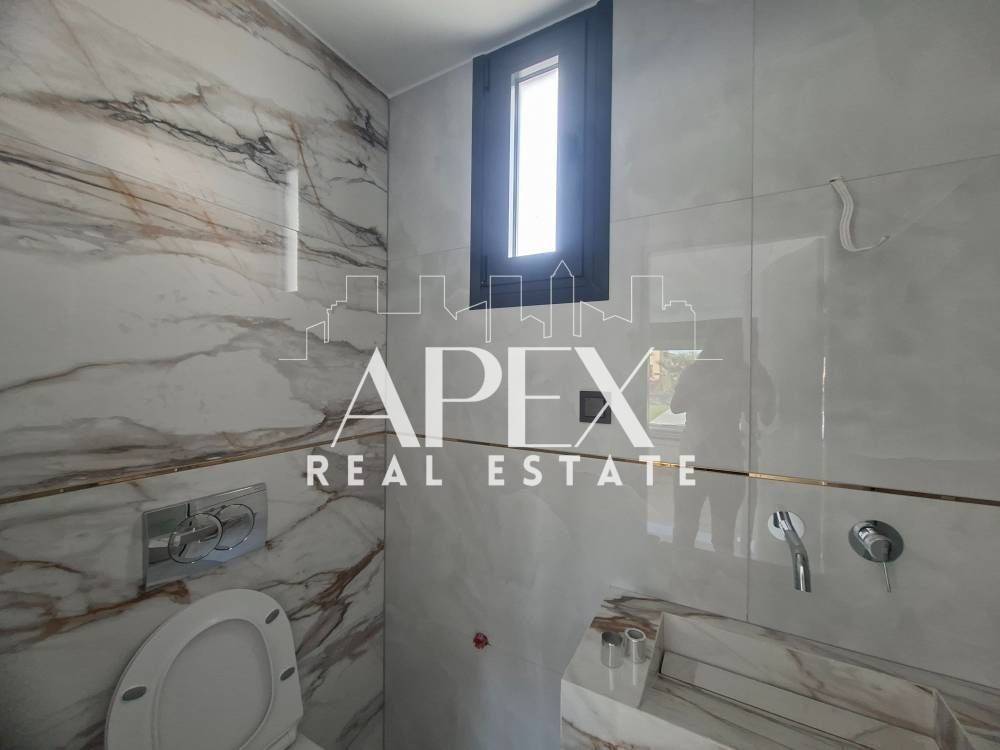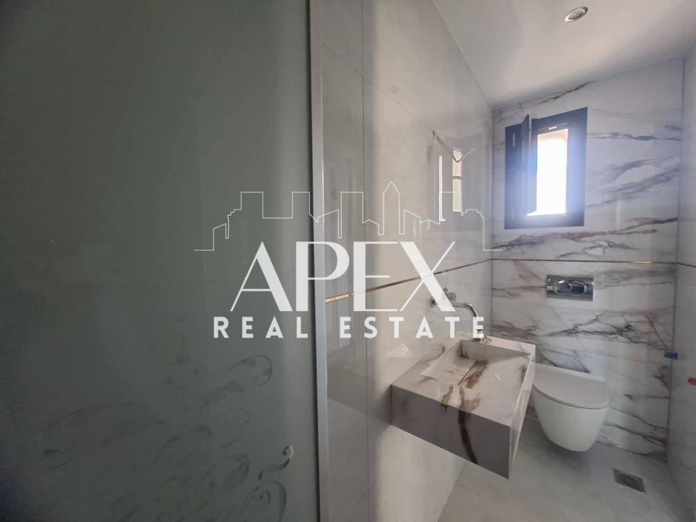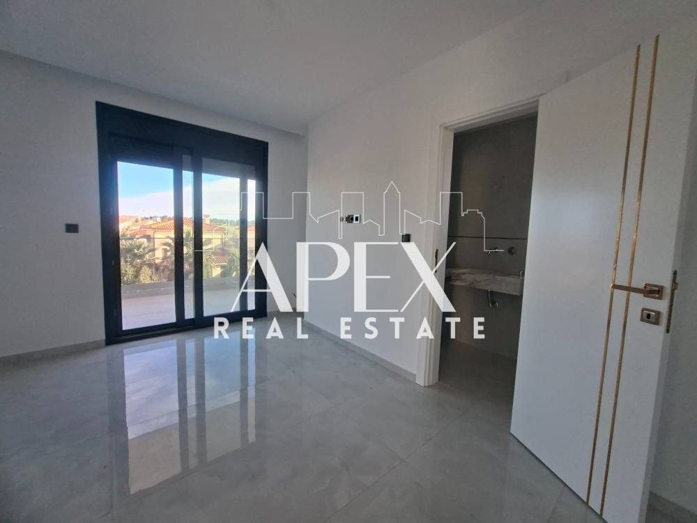 Suitable for Golden Visa. Luxurious newly built detached house of 128sq.m., for sale in Kallithea. It is spread over two levels and consists of two master bedrooms each with individual bathroom, a bright open plan kitchen with living room, a guest bathroom and large verandas. It has a garden, swimming pool, solar water heater, air conditioning, security door, double glazing frames and screens, re installation for heating, tennis court in the complex and two parking spaces. It is located in an ideal location, near beach bars, restaurants, supermarkets, and shops.