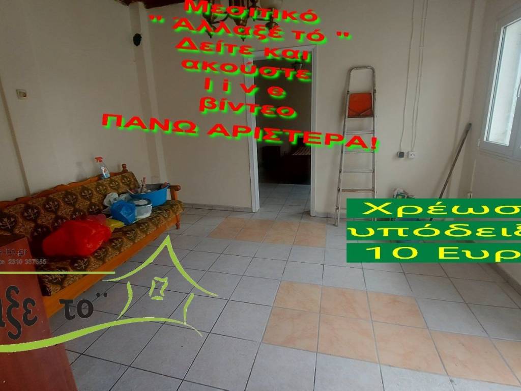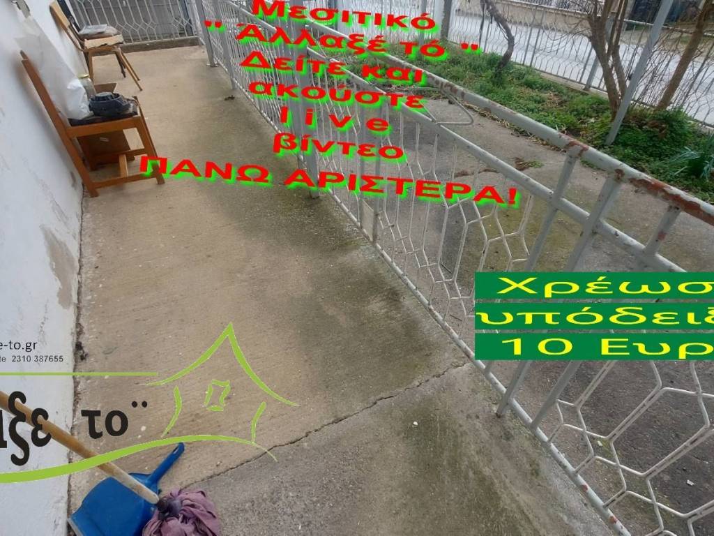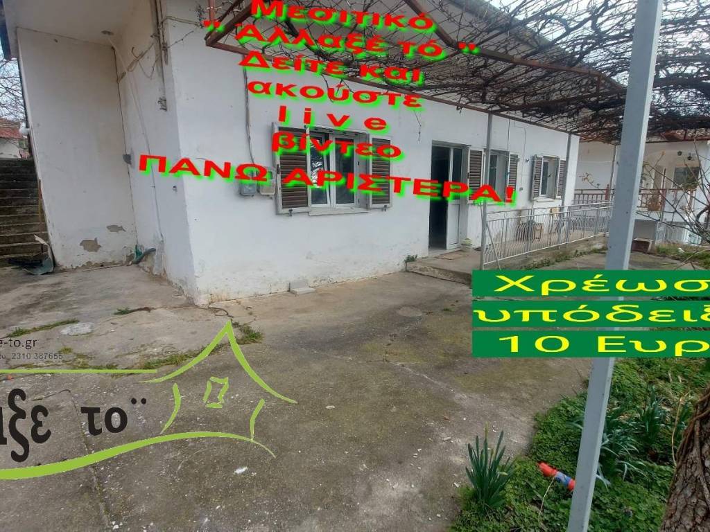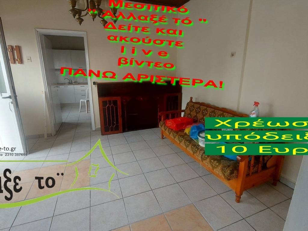 Check the video : https://youtu.be/NGyQJnqzaxM The Presentation - suggestion of the property costs 10 €.(Including Taxes) law Ν.2859/2000 » Ar 9. If you liked the photos and the description, do not forget to watch and listen to the video! Watch and listen to the video as many times as you like here: https://youtu.be/NGyQJnqzaxM or right and bottom to the end of the page. So you know from the beginning if it's worth to seeing it.. It's like you are within the home. SERVICES PROVIDED: The Presentation - suggestion of the property costs 10 €.(Including Taxes) Upon completion of the transaction, the above amount is deducted from the Brokerage Fee. The property is indicated by the demonstration of the police ID. The Presentation of the property at our office is free of charge. The Real Estate Change Office was created by Rania Pappa and Vassilis Kontelis, because when they were looking for a home, they were badly affected by ... realtors. Brokering fees is not the only thing that we care about. We love this job very much and we identify with you as if we were looking for a home for us ... Like Like on our Facebook page and see all opportunities here: https: //www.facebook.com/allaxeto.gr ΥοuTube : https://www.youtube.com/user/MsPaco75 Real Estate Office "Change it" Mobile phone for appointment: Vasilis 00306932425542 {cosmote,viper,what's app} Contact Person: Mr. Vasilis Kontelis Tel.: 00302310387655 Address: Riga Ferraiou 175 Sykies P.C. 56626 Thessaloniki Email: b-kontel@otenet.gr www.allaxe-to.gr