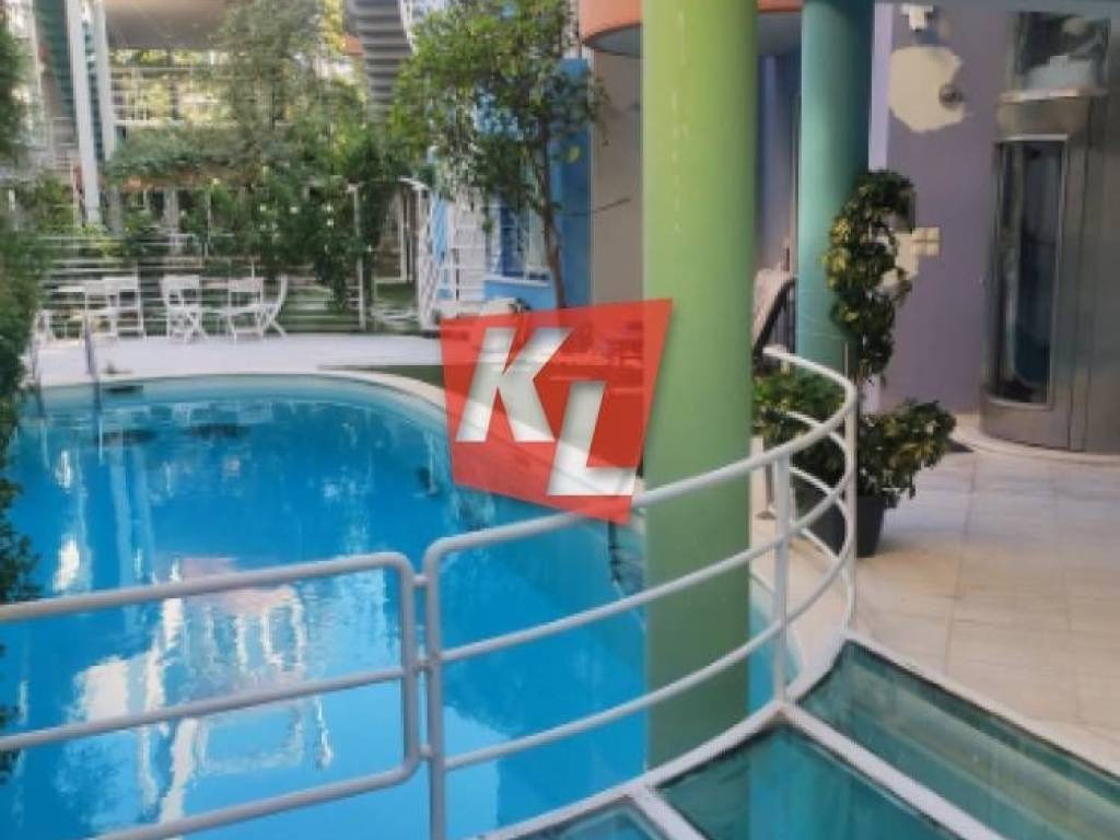 Additional amenities include a shared swimming pool, glass elevator, fireplace, marble floors on verandas, granite and oak floors indoors, balconies with free views on all sides, autonomous heating and cooling system (Fan Coil), solar water heater, alarm system with full external security cameras, awnings, and window screens.