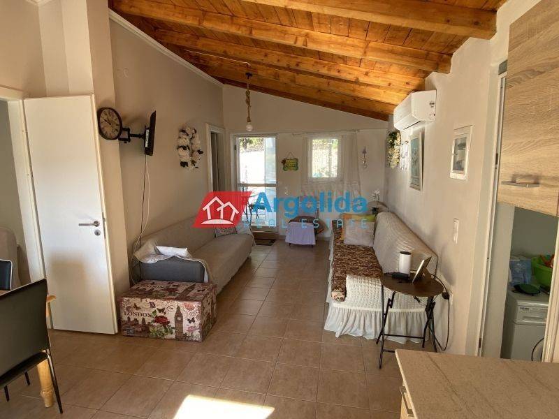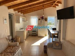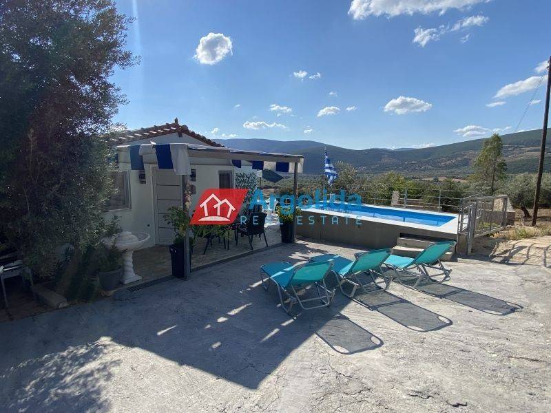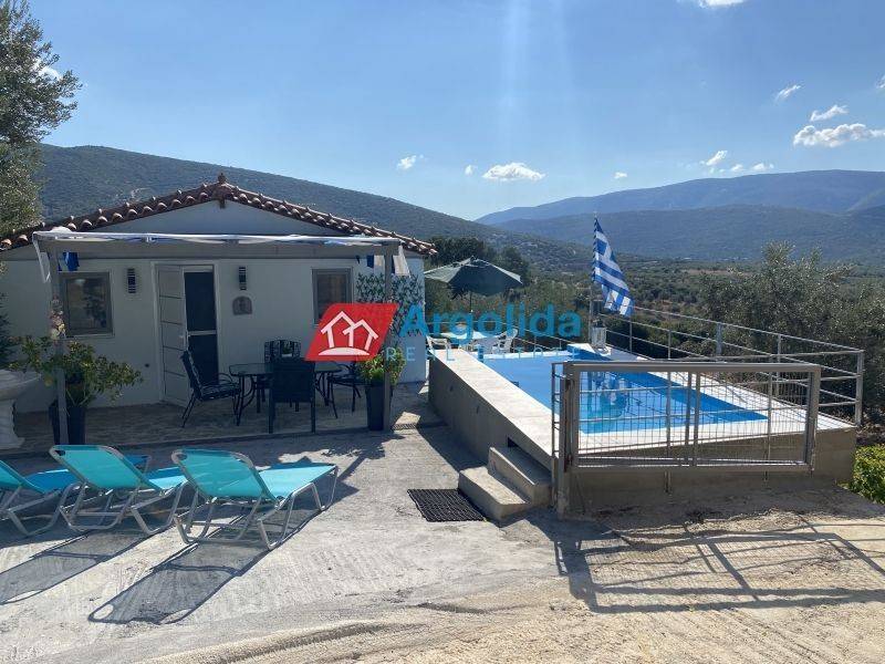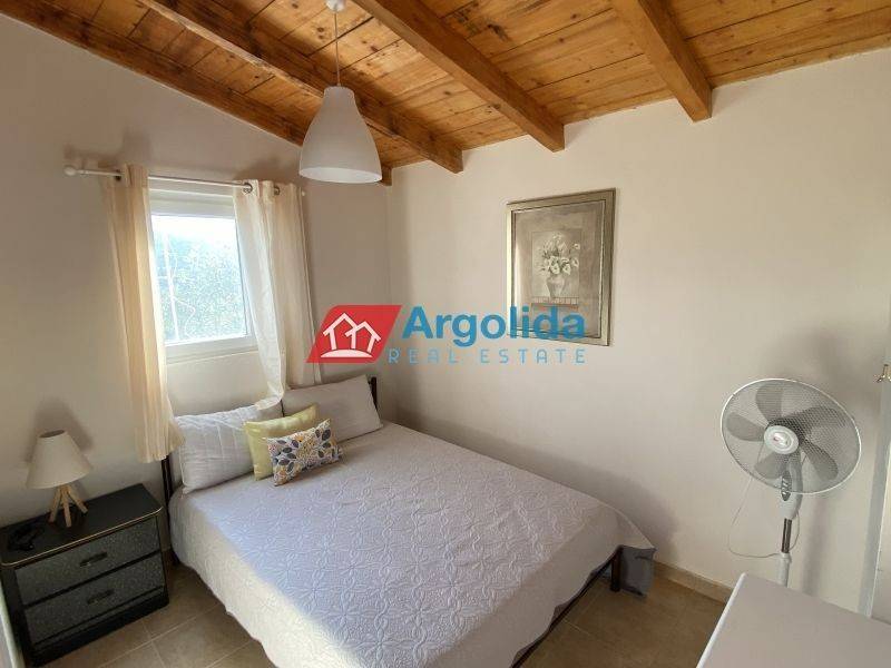 In Agrilitsa, a small rural settlement located 20 minutes from the town of Argos, a fully furnished ground-floor house of 60 sq.m. is available for rent within a 100 sq.m. plot featuring a private pool. The residence offers an open-plan living and dining area with a kitchen, two bedrooms, and one bathroom. The living room provides direct access to a veranda with beautiful views, while the outdoor space includes a lovely landscaped garden with a pool. This charming home is an ideal choice for anyone seeking a quiet, secluded, and relaxing lifestyle close to nature.