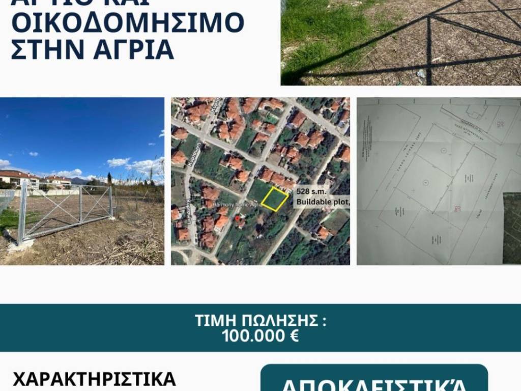 ΑΠΟΚΛΕΙΣΤΙΚΑ από τη RELAND | Οικόπεδο 528 τ.μ. | 200μ από θάλασσα | Αγριά, Βόλος Διατίθεται κατ’ αποκλειστικότητα από τη RELAND εξαιρετικό οικόπεδο στην Αγριά, στην οδό Ντουρντούνη, μόλις 220 μέτρα από τη θάλασσα. Ιδανική επιλογή για ανέγερση κατοικίας ή επενδυτική εκμετάλλευση σε προνομιακή περιοχή. ✨ Χαρακτηριστικά: • Εμβαδόν: 528 τ.μ. • Συντελεστής δόμησης: 0,8 (δόμηση ~422 τ.μ.) • Κάλυψη: 50% • Πρόσοψη: 21,48 μ. σε δρόμο πλάτους 8 μ. • Επίπεδο – άρτιο και οικοδομήσιμο • Ανοιχτωσιά • Απόσταση από θάλασσα: 200 μ. Ήσυχη και προνομιακή τοποθεσία με εύκολη πρόσβαση σε αγορά και παραλιακή ζώνη. Τιμή: 100.000€ Πληροφορίες: 6970080280 ✉️ inforelandvolos@gmail.com
