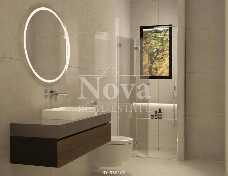 Alimos - Apartment 139sqm bedrooms 3, 3rd, under construction, year built 2025, energy class A+, living room, kitchen, bathroom, wc, heating type: autonomous (fan coil), parking covered, quiet, exposure, luminous, facade, painted, storage space, solar heater, external thermal insulation, fire place, balconies, large balconies, elevator, thermal shut-off frames, double glaze windows, door screen, wood & tile floors, three phase electricity, secure door, alarm, video doorbell, luxurious.