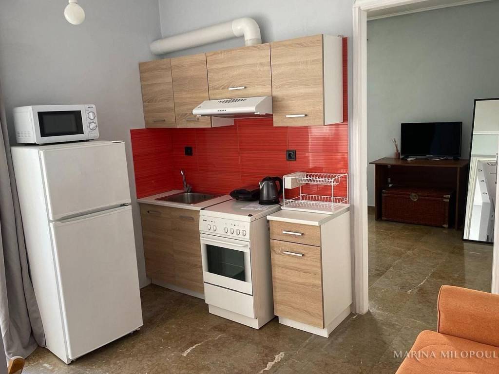 Glyfada - close to the center, furnished apartment 40 sqm, 3rd floor. It consists of a living room - kitchen, 1 bedroom and a renovated bathroom. It features security door, a large terrace, double glazing, security door, central oil heating, inverter A/Cs. Neat building with two facades on a quiet street with lots of greenery, north-east orientation. Maintenance expenses in the winter months about 60€ (petroleum included) and in the summer about 25 euros. No pets. It is located 500 meters from the shopping area of Glyfada and the tram stop, 700 meters from the "One and Only" 5* beach and 1 km from the public beach.