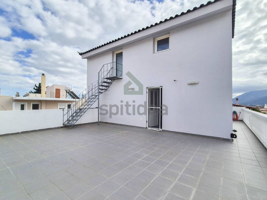 This is a 160sqm maisonette on the 1st floor of a building built in 2004, which is arranged on 2 levels. The 1st floor, where the main entrance is located, consists of a living room, a semi-independent kitchen (equipped with stylish built-in electrical appliances and a refrigerator-wardrobe) with space for a dining room, 3 bedrooms and a bathroom (equipped with a washing machine and dryer if someone wishes to keep them) and the 2nd floor consists of a hallway with wardrobes for storage space and a master bedroom with its own bathroom. In addition to the 160sqm, there is also an undeveloped attic of 25sqm with access from the terrace. It has autonomous heating per level with oil, aluminum frames with double glazing and screens, a triple-energy solar water heater, alarm, security door, 3 air conditioners and video door entry. It is well located, close to schools and is an excellent choice for someone looking for comfort and independence. (S30348)