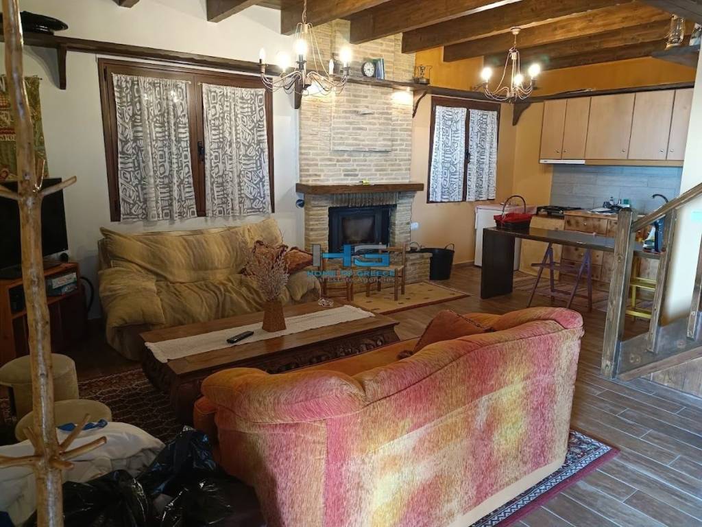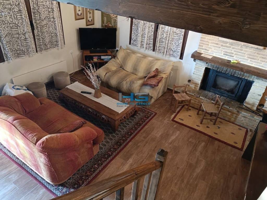 For Sale: Two Independent Maisonettes with a Total Area of 157.06 sq.m. in Mesaia Synoikia Trikalon, on a 587.02 sq.m. Plot Fully renovated, with the option to easily combine them into one single maisonette. The properties consist of two residences of 79.13 sq.m. and 77.93 sq.m., with the possibility of merging them into one unified maisonette simply and effortlessly. Built with stone and wood of high aesthetic quality, they feature independent entrances, an open-plan living room and kitchen, 2 bedrooms, and 1 bathroom per maisonette. They are equipped with energy-efficient window frames, a fireplace, an internal wooden staircase, and full furnishings. The outdoor areas include spacious verandas with mountain views, a well-maintained garden, private parking, storage rooms, and a BBQ area. The reconstruction and full renovation were completed in 2010.