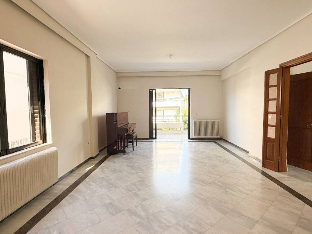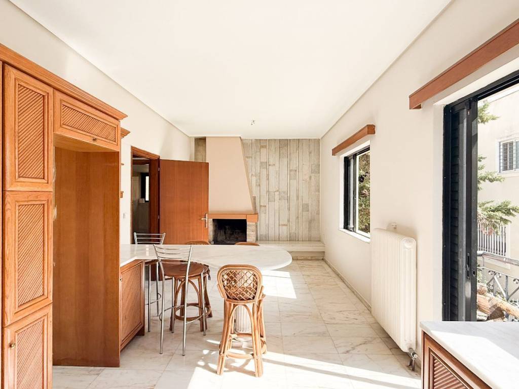 This is a 141sqm maisonette on the 1st floor of a two-family house built in 1987. It is divided into two levels which are configured as follows: On the 1st floor of 86sqm there is a large living room, a kitchen with a living room and a fireplace and a wc. We go up to the 2nd floor of 55sqm where there are 3 bedrooms and a bathroom. The maisonette has very large verandas of 50sqm, autonomous oil heating, solar water heater, marble floors in almost all areas, aluminum frames, internal storage space under the stairs, air conditioning and a covered parking space. It is located in an excellent location, close to schools, a local market and 400m from the Chalandri metro station.