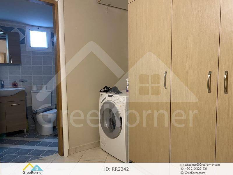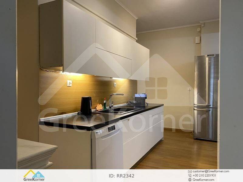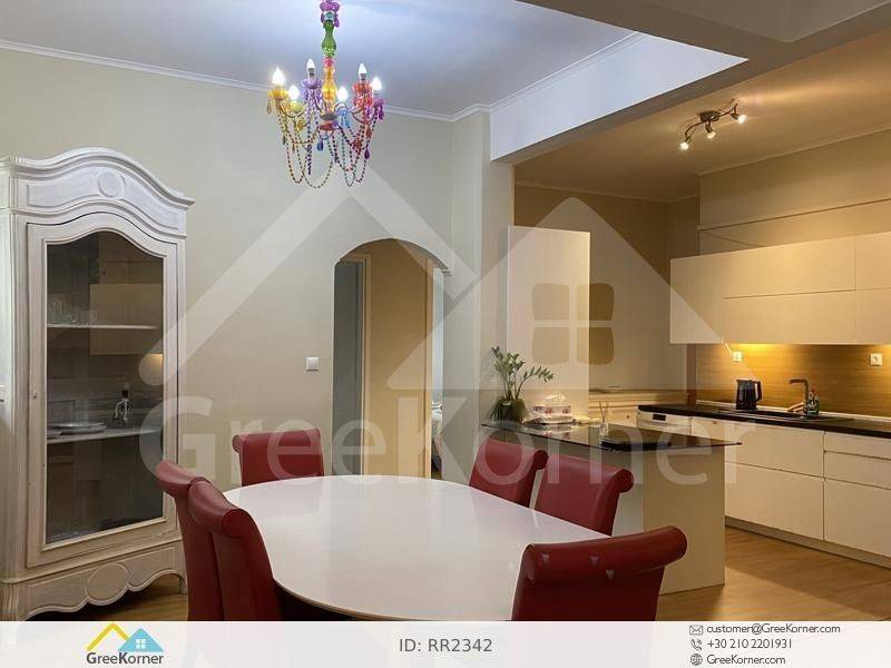 Kifissia, Agia Kyriaki - Apartment 140sqm fully furnished, bedrooms 3, levels 1, semi-basement (119sqm), excellent condition, year built 1976, renovation year 2023, energy class D, living room, hall, kitchen, bathroom, wc, heating type: autonomous (natural gas), air condition, quiet, dual aspect apartment, luminous, frontage, painted, storage space 10sqm, solar heater, boiler, loft storage, garden, garden 25sqm, built in appliances, aluminum frames, double glazed windows, door screen, laminate floors, secure door, alarm, luxurious, laundry room, pets allowed, within city plan, residential zone, access from asphalt, close to metro/train (up to 500m), close to school (up to 500m), close to market (up to 500m).