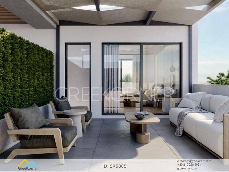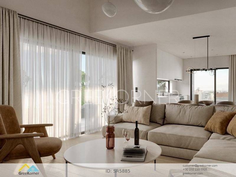 Agia Paraskevi (Attica - Northern Suburbs), Tsakos - Floor Apartment 114sqm plot 430sqm, bedrooms 3, levels 1, 3rd (114sqm), newly built, year built 2025, energy class A++, living room, hall, kitchen, bathroom, wc, heating type: individual unit (heat pump), air condition, a/c type fan coil, parking covered,2, quiet, dual aspect apartment, luminous, unobstructed view view, frontage, painted, electric roller shutters, storage space, solar heater, boiler, external thermal insulation, fireplace, balconies, large balconies, tents, elevator, garden, thermal shut-off frames, double glazed windows, door screen, wood floors, handicap ramp, without common charges, three phase electricity, night electricity discount rate, secure door, alarm, video doorbell, luxurious, under floor heating, smart home, ev charger, satellite, internet, laundry room, pets allowed, within city plan, residential zone, south-western orientation, access from asphalt, close to super market (up to 500m), close to school (up to 200m), close to bus stop (up to 200m), close to attiki odos (up to 2000m), close to square (up to 1000m), close to metro/train (up to 1000m).