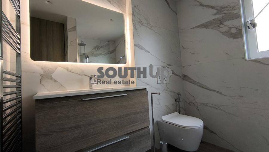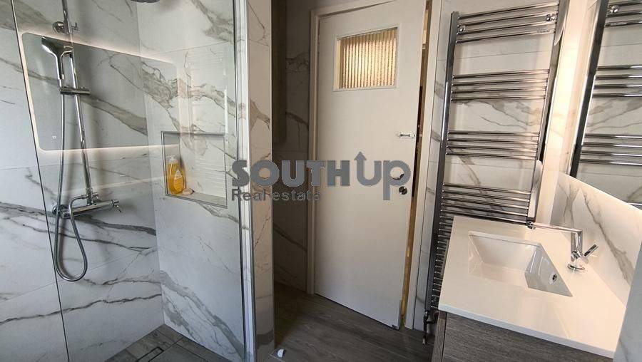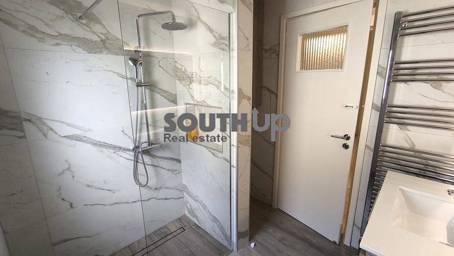 Saronida - Apartment 100sqm unfurnished, bedrooms 2, levels 1, 1st (100sqm, 2 bedrooms, living room, dinning room, kitchen, bathroom), excellent condition, year built 1980, renovation year 2025, energy class C, living room, hall, kitchen, bathroom, heating type: autonomous (oil), air condition, parking ground floor, quiet, dual aspect apartment, luminous, sea view, solar heater, balconies, large balconies, tents, garden, garden 700sqm, built in appliances, aluminum frames, double glazed windows, marble & tile floors, separate kitchen, three phase electricity, night electricity discount rate, residential zone, south-western orientation, access from asphalt, close to sea (up to 1000m), close to market (up to 500m).