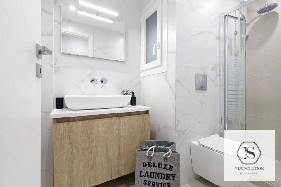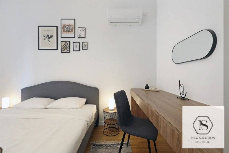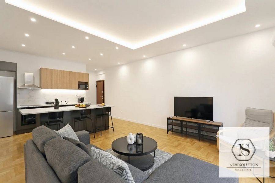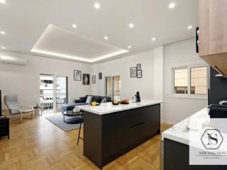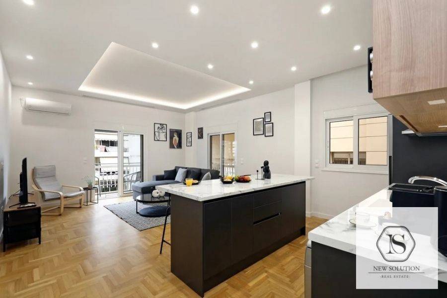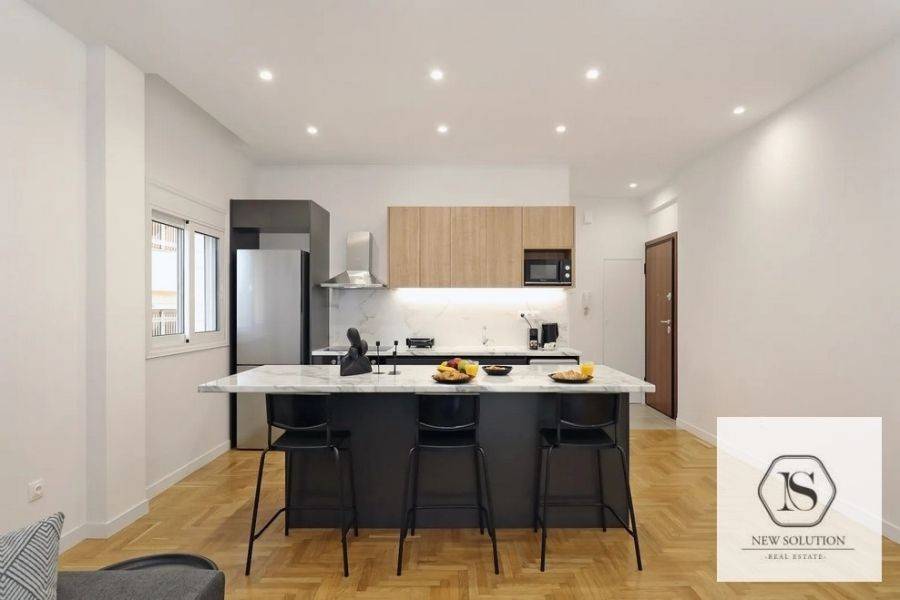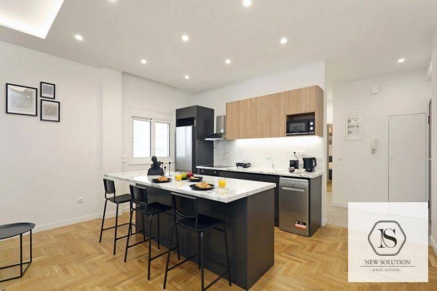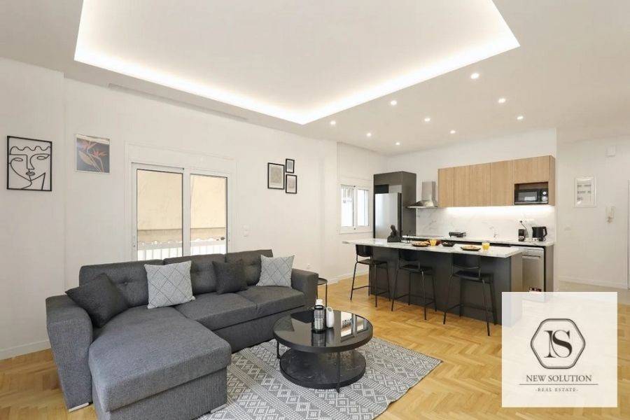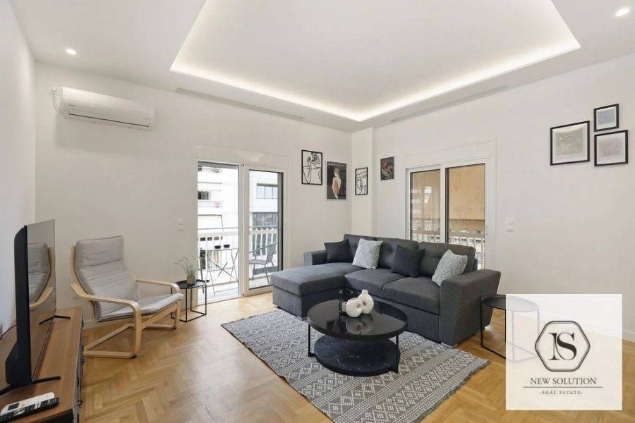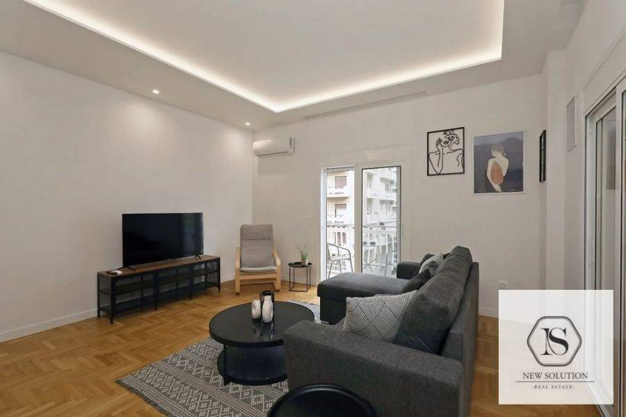 Nea Smyrni, Chrysaki, Apartment For Rent, 75 sq.m., Property Status: Amazing, Floor: 4th, 2 Bedrooms 1 Kitchen(s), 2 Bathroom(s), Heating: Autonomous - Electricity, Building Year: 1970, Energy Certificate: C, Floor type: Wooden floors + Tiles, Type of door frames: Aluminum, Features: Elevator, Security door, Electric Appliances, Double Glazed Windows, Balcony Cover, Balconies, Pets Allowed, Furnished, Luxury, Roadside, Bright, AirConditioning, Renovated, Price: 1.400€. NEW SOLUTION REAL ESTATE, Tel: (+30) 210 9680099-(6944848414), email: info@newsolution.gr