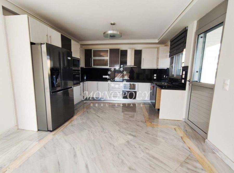 Anavyssos - Agios Nikolaos, with sea view, luxurious 120 sq m., 2nd floor apartment, built in 2010, energy class C, bright, frontage, airy, in excellent condition. It consists of a large living room with marble floors, open kitchen with all built-in electrical appliances, (hob, oven, microwave, refrigerator, dishwasher), 2 bedrooms (1 master) with its own bathroom and dressing-room and another one with tiled floors, verandas. It has autonomous heating with oil, fireplace, solar, triple glazing, screens, video intercom, security door, elevator, alarm installation, 1 parking space in the basement. It is located at the height of the school of tourism professions, just 200 meters from the beach. *Property location on the map can be relevant and not accurate. *ID or Passport and TAX number are required for visiting the property, from each person that will be present.