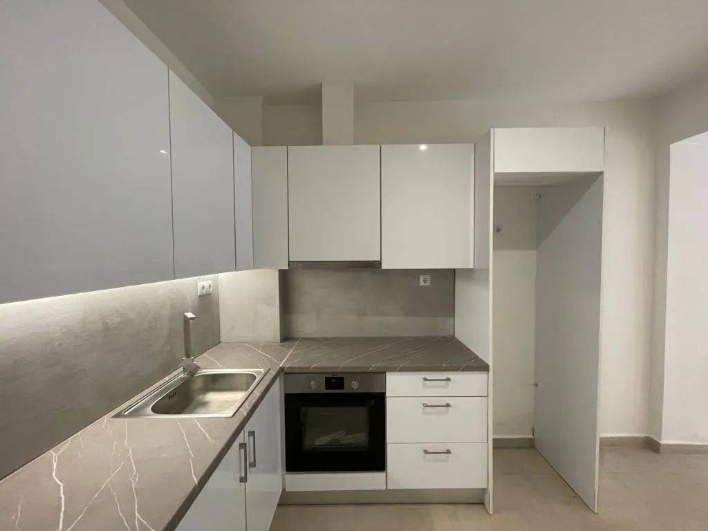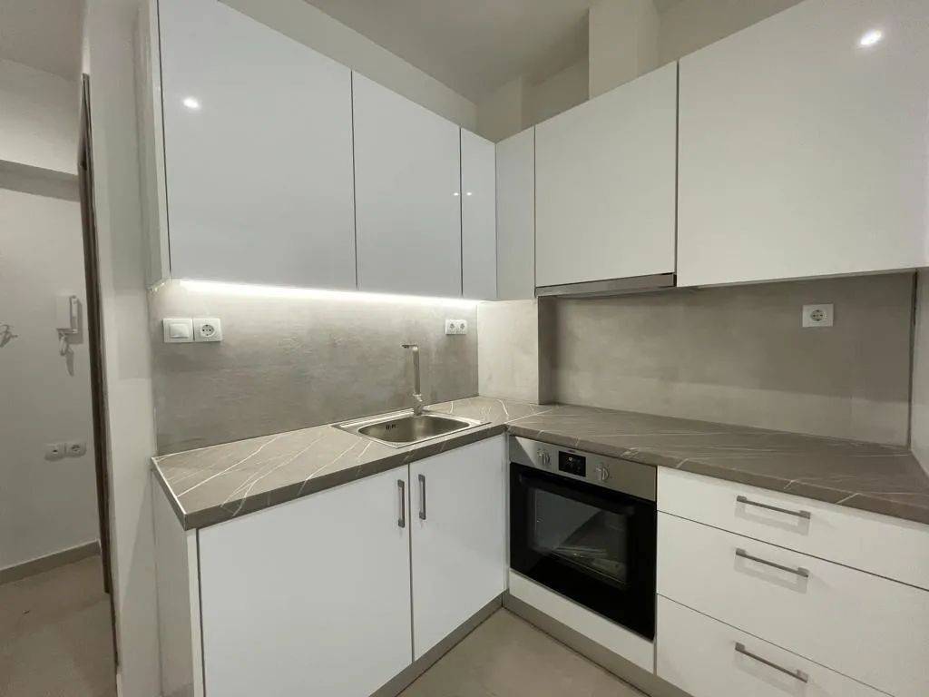 A stylish 34 sq.m. studio apartment with a private courtyard is available for rent, fully renovated in 2020, combining modern aesthetics with functionality. The property consists of a comfortable bedroom, bathroom, separate kitchen, and a bright living area, thoughtfully designed to maximize comfort and practicality. It features aluminum window frames and air conditioning, ensuring energy efficiency and year-round comfort. The private courtyard offers a unique outdoor relaxation space, adding significant value to the property. Bright and well-maintained, it is an excellent choice for both residential use and professional premises.
