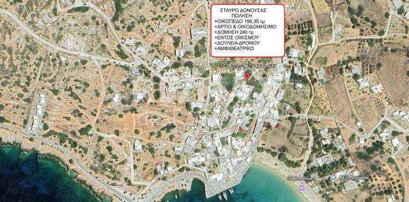 Πρόκειται για οικόπεδο 199,35 τ.μ., εντός οικισμού, με απόσταση μόλις 130μ. από τη θάλασσα, άρτιο και οικοδομήσιμο ως 240 τ.μ., με απεριόριστη θέα στη γύρω περιοχή και τη θάλασσα. Το οικόπεδο αυτό αποτελεί μια εξαιρετική επιλογή για τουριστική εκμετάλλευση, ιδιωτική κατοικία ή εποχιακό κατάλυμα, με δυνατότητα οικοδόμησης σύμφωνα με τις ανάγκες σας και εύκολη πρόσβαση, ενώ απέχει μόλις 500 μ. από το λιμάνι της Δονούσας.