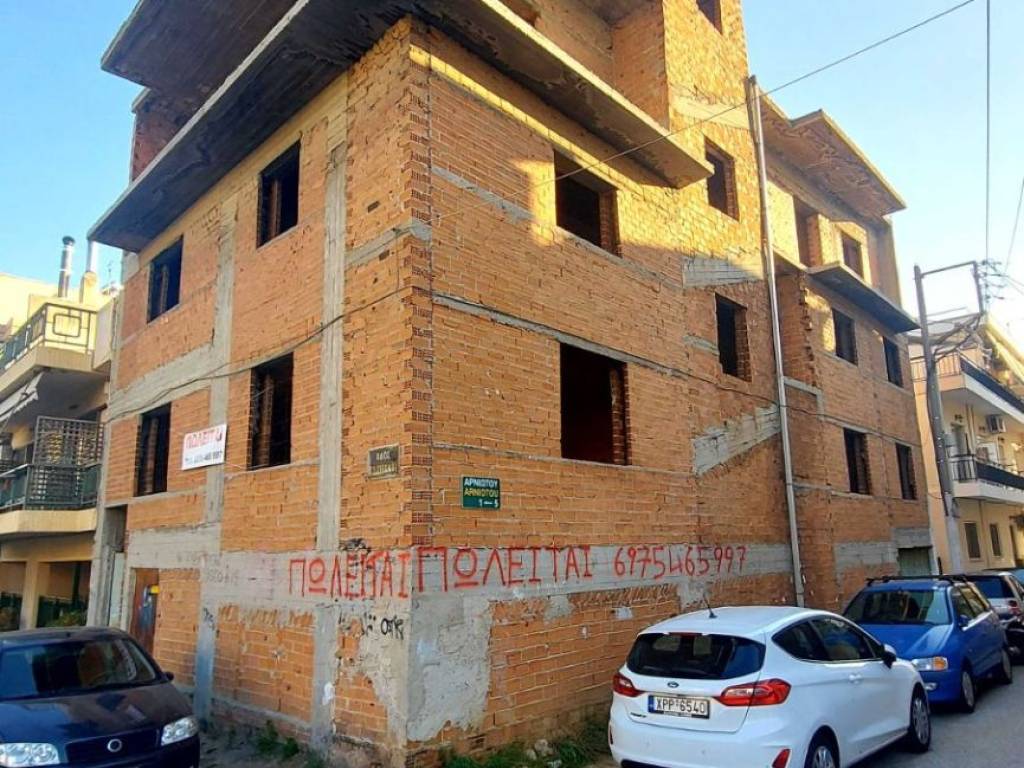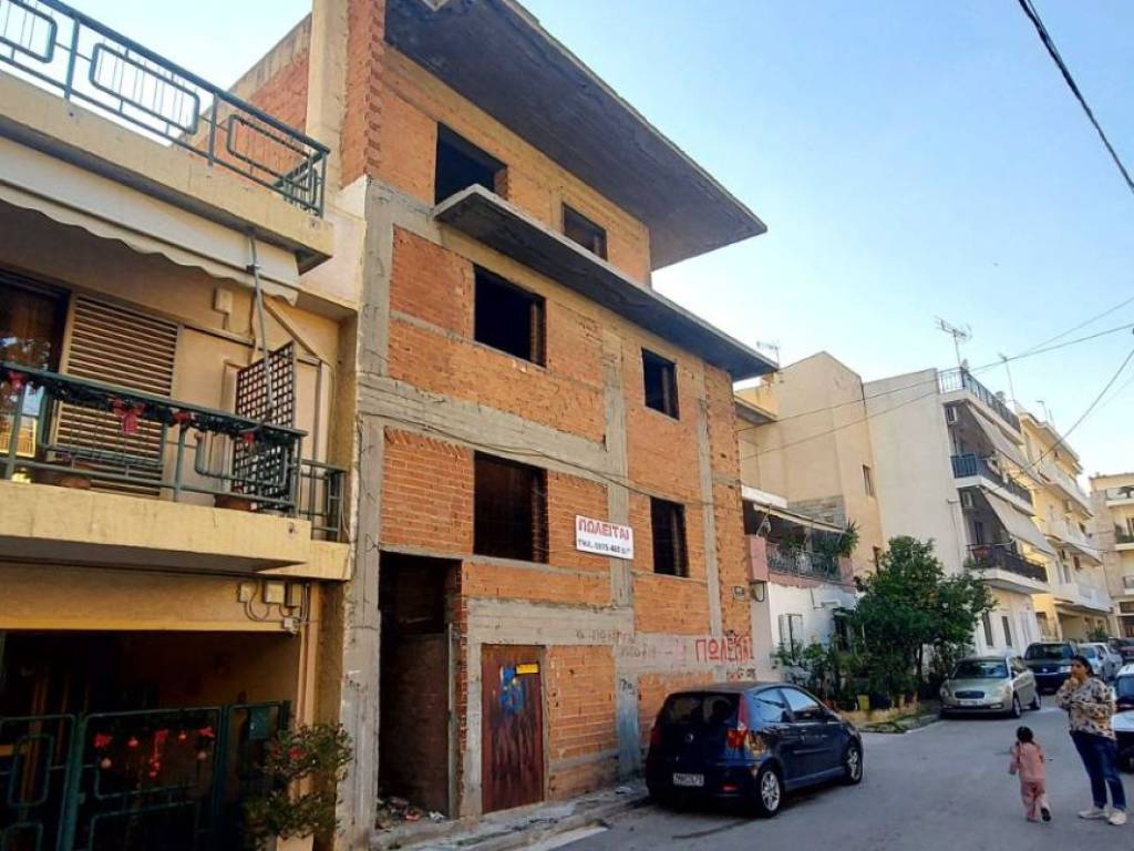 Πωλείται ημιτελής γωνιακή οικοδομή τεσσάρων επιπέδων, σε προνομιακό σημείο στo Περιστέρι επί των οδών Πλούτωνος και Αρνιώτου. Έχει ανεγερθεί σε οικόπεδο επιφάνειας 144,85τμ και αποτελείται από υπερυψωμένο υπόγειο, ισόγειο, πατάρι και Α όροφο. Η συνολική επιφάνεια της οικοδομής είναι 435,31τμ και αποτελείται από υπόγειο επιφάνειας 137,95τμ, ισόγειο κατάστημα επιφάνειας 119,50τμ, πατάρι καταστήματος επιφάνειας 53,60τμ ένα οροφοδιαμέρισμα Α ορόφου επιφάνειας 95,96τμ και κλιμακοστάσια. Το υπόγειο περιλαμβάνει θέση πάρκινγκ και το κλιμακοστάσιο διαθέτει φρεάτιο ανελκυστήρα. Έχουν ολοκληρωθεί ο οικοδομικός σκελετός και τα χτισίματα. Πρόκειται για ένα ακίνητο με δυνατότητες διαμόρφωσης ή αλλαγής χρήσης, ιδανικό τόσο για ιδιοκατοίκηση όσο και για εμπορική εκμετάλλευση.