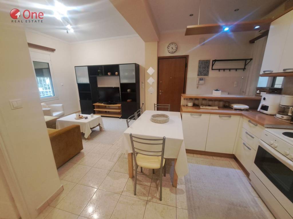 Nea Smyrni - Ano Nea Smyrni, Apartment,, Rental, 45 sq.m, year built 2006, renovated in 2008, 1 rooms, Ground Floor, Elevated, Energy class: A, Various Characteristics: aluminum frames, available, awnings, balcony, bathroom, bright, built-in closets, double glazed windows, drains, electric roller shutters, electrical appliances, entrance intercom, floor-through, furnished, mesh window screens, near public transport, night reduced electricity rates, no elevator, no pets allowed, no shared utility bills, painted, residentila area, satellite TV, security entrance door, street-facing, suitable for students, tiles, View: park view, Condition: renovated, Public Transportation: near a bus stop, near a tram station, Heating System: air conditioning, gas central heating. property ID: 885486, www.realestateone.gr