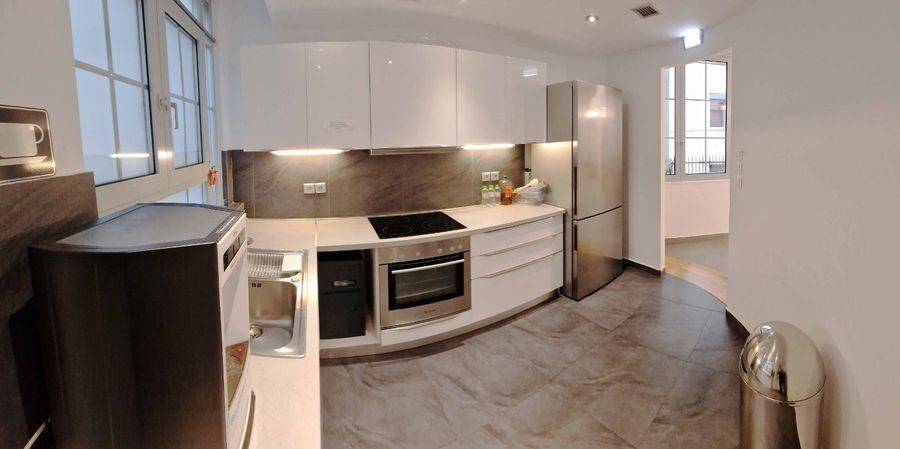 ΠΛΑΤΕΙΑ ΚΑΡΥΤΣΗ - Γραφείο 234τμ, πλήρως επιπλωμένο, 2ος, ετοιμοπαράδοτο, ενεργειακή κλάση Γ, κουζίνα, αυτόνομη θέρμανση (κλιματισμός), κλιματισμός, φωτεινό, ενιαίος χώρος, διαμορφωμένος χώρος, βαμμένο, με εξοπλισμό, κουφώματα αλουμινίου, τύπος δαπέδων πλακάκι, τριφασικό ρεύμα, πόρτα ασφαλείας, συναγερμός, κάμερες ασφαλείας, έλεγχος πρόσβασης, πολυτελές, οπτική ίνα. Στα γραφεία προς ενοικίαση περιλαμβάνεται ο παρακάτω εξοπλισμός: • Θέρμανση και ψύξη μέσω κλιματιστικών μονάδων Daikin: o Εσωτερικές κλιματιστικές μονάδες τύπου οριζόντιας τοποθέτησης κρυμμένες στην ξύλινη design οροφή. o Πλήρη εξάλειψη τόσο του λειτουργικού τους θορύβου μέσω ηχομόνωσης πετροβάμβακα, όσο και της ροής του αέρα τους μέσω κατάλληλων ηχοπαγίδων. o Ελεγχόμενες μέσω επίτοιχων control και μέσω Bluetooth από Web App (iOS & Android) της Daikin. • Δομημένη καλωδίωση για 25+ θέσεις εργασίας με παροχές ανά θέση: o Δικτύου ethernet (Data & VoIP) 2 Χ RJ45 πρίζες, ταχύτητας 1 Gbps (Cat 6e). o Πρίζες (λευκές) ρεύματος AC μέσω δικτύου. o Πρίζες (κόκκινες) ρεύματος AC μέσω μπαταριών UPS. • Rack/Server Room χωρητικότητας ενός Rack 42U. • Meeting room με υψηλή ηχομόνωση. • Τραπεζαρία/meeting room (Communal) με εντοιχισμένες ντουλάπες αποθήκευσης και ξύλινο δάπεδο (παρκέ). • Ευρύχωρη καινούρια κουζίνα εξοπλισμένη με πάγκους, συρτάρια, ντουλάπια και εντοιχισμένες ηλεκτρικές συσκευές: o 4 Κεραμικές εστίες. o Φούρνος. o Απορροφητήρας. o Πλυντήριο πιάτων. o Ψυγείο-καταψύκτης inox. o Παγομηχανή επαγγελματική για παγάκια συνδεδεμένη με το δίκτυο νερού για αδιάλειπτη λειτουργία και παραγωγή. • Δύο πολύ ευρύχωρες τουαλέτες, με κρεμαστές επίτοιχες λεκάνες και εντοιχισμένα καζανάκια (η μία με καμπίνα/ντουζιέρα, η άλλη με ντουλάπα αποθήκευσης). • Ηλεκτρικοί ανοξείδωτοι στεγνωτήρες χεριών στις 2 τουαλέτες πολύ μεγάλης παροχής ζεστού αέρα. • Μεταλλικές πόρτες ασφαλείας (μεταλλικές ιδιοκατασκευές design). • Κουφώματα ΕΤΕΜ top προδιαγραφών με τους μεγαλύτερους συντελεστές ηχομόνωσης και θερμομόνωσης. • Ηλεκτρικά roller blinds σε όλα τα παράθυρα (χρώμα ανοικτό γκρι). • Δάπεδο εξαιρετικά υψηλής ποιότητας, αντοχής και αισθητικής, αποτελούμενο από γκρι πλάκες/πλακάκια πολύ μεγάλων διαστάσεων: 1,20m X 1,20m. • Ηλεκτρικές σίτες εντόμων και εξωτερικά ρολά ασφαλείας αλουμινίου σε μερικά από τα παράθυρα. • Ξύλινη design οροφή μέσα στην οποία βρίσκεται κρυμμένος και ηχομονωμένος ο ηλεκτρομηχανολογικός εξοπλισμός του κλιματισμού του φωτισμού και των ηχείων. • Εγκατάσταση φωτισμού οροφής dimmable LED (κρυφού & Spot) πολύ χαμηλής κατανάλωσης ρεύματος. • Μεταλλικό εξωτερικό μπαλκόνι έξω από τα παράθυρα που βρίσκονται περιμετρικά στον φωταγωγό. • Το μπαλκόνι είναι διακοσμημένο με γλάστρες με φυτά (πικροδάφνες), τα οποία είναι φωτιζόμενα το βράδυ (αυτόματα μέσω χρονοδιακόπτη) και αυτόματο πότισμα ελεγχόμενο από Web App (iOS & Android). • Κατασκευασμένες υποδομές οπτικών ινών για άμεση σύνδεση με πάροχο τηλεφωνίας & Internet (Vodafone) με οπτική ίνα ταχύτητας 300Mbps upload & download (μισθωμένο κύκλωμα). • Μεταλλικό τροχήλατο Server Rack Enclosure 42U. • Τηλεφωνικό κέντρο iPECS – Ericsson – LG 30 γραμμών. • Τηλεφωνικές συσκευές IP – iPECS Lip3020 PoE (15 συσκευές) • Ενεργός εξοπλισμός ενσύρματου δικτύου (HP POE switches 1Gbps). • Ηχητική εγκατάσταση (HI-Fi) 12 ηχείων τριών «δρόμων» (κρυμμένα στην οροφή). • Κονσόλα ήχου για τον έλεγχο και την τροφοδοσία των 12 εγκατεστημένων ηχείων οροφής με διαχωρισμό ηχητικής κάλυψης ανά χώρο. • Σύστημα συναγερμού PARADOX με πλήρη έλεγχο και ειδοπ
