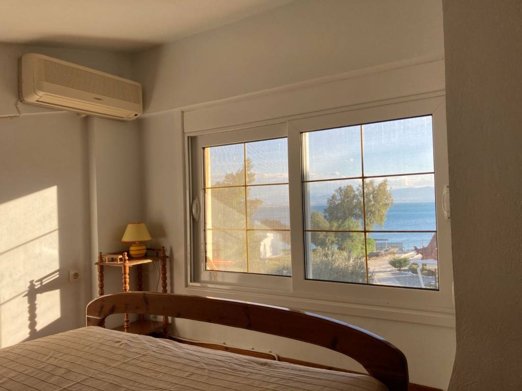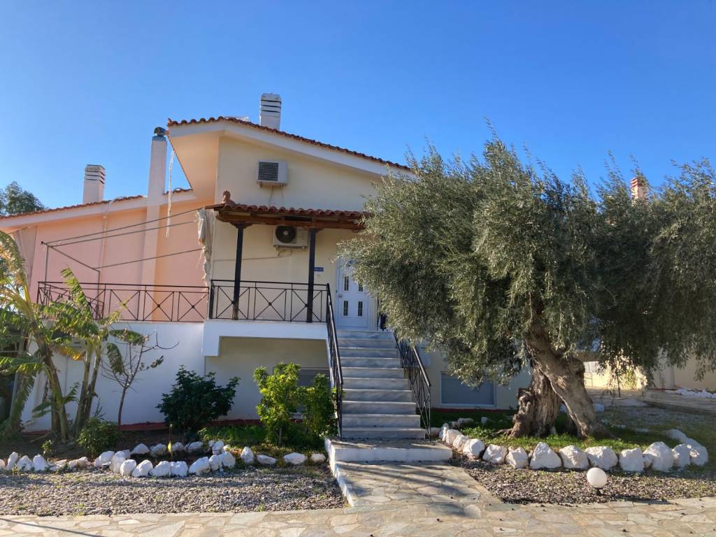 This holiday home is located in the settlement of Skaloma, Perachora, near Loutraki. It features an open-plan living room and kitchen area, one bathroom, and one bedroom—with the possibility of creating a second bedroom. It also has a large veranda with an unobstructed sea view. The house is fully equipped with electrical appliances and kitchen utensils to ensure a comfortable stay. It is also accessible for people with disabilities. It belongs to a complex of six houses situated on a 4,000 m² plot, featuring a well-maintained garden with olive trees and a BBQ area, which leads down to a beautiful, “private” beach with pebbles, sand, and crystal-clear waters. The rental price is as follows: €600 per month for 4 months or more, €700 per month for 3 months, and €2,000 for the two-month period of July–August. The settlement is located 18 km from Loutraki, 2.5 km from Lake Vouliagmeni, 5 km from the archaeological site of Heraion, and 90 km from Athens. Panoramic video http://****.**?v=8Zx-skYr0lY Μ: +**/******