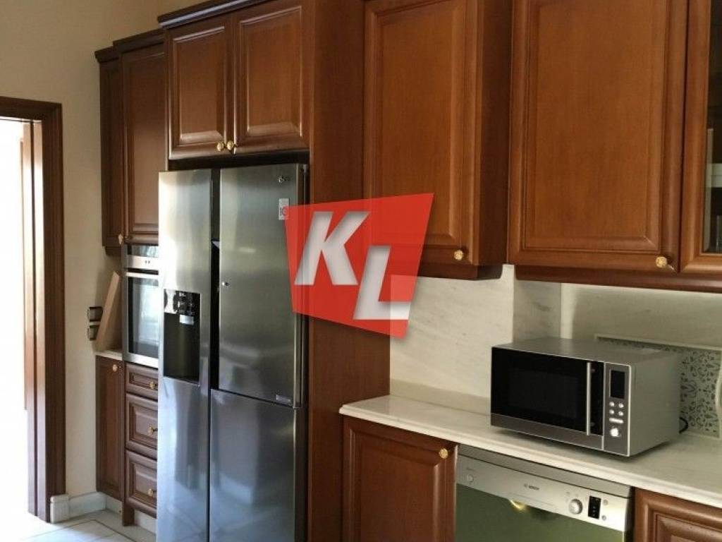 Politia: Detached house of 335 sq.m., 3 levels, with unlimited panoramic views and swimming pool. It consists of ground floor with open plan living room with dining area, closed kitchen, marble fireplace, office, wc, 1st floor with 3 rooms 1 master and 2 rooms with 1 bathroom and huge terrace with view, playroom with large living areas overlooking the back garden, with fireplace, 1 maid's room with bathroom and kitchen, storage. It was built in 2005 and has aluminum frames with double glazing, security door, marble and wood floors in the bedrooms, alarm, autonomous oil heating, garage 65sqm, BBQ. Price € 4,500 Property code: # 3144