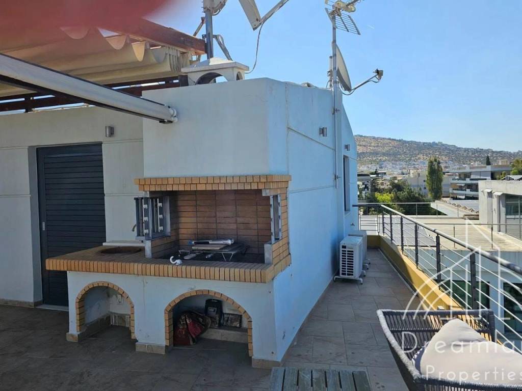 GLYFADA Center, Newly Built Luxurious Maisonette 140 sqm., 3rd - 4th Floor, 3 Bedrooms, Furnished, Spacious Living Area, Comfortable Kitchen, 2 Bathrooms, '14 Construction Year, Autonomous Heating with Natural Gas, Air Conditioning, Fire Place, Security Door, Solar Water Heating, Underground Parking, Sea View, Huge Private Terrace with BBQ, Aluminum Frames, Double Glazed Windows, Excellent Condition, Luxurious Construction, Quiet Area, Bright, Fully Furnished and Equipped, We Offer a Wide Variety of the Best Furnished Apartments, Ask For Availability, Price 3.500 Euros (Listing code: 1476).