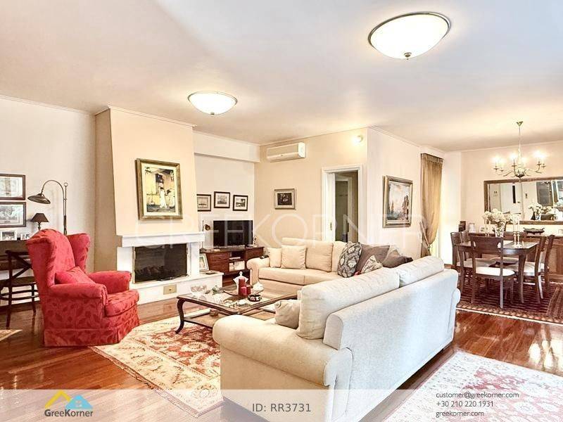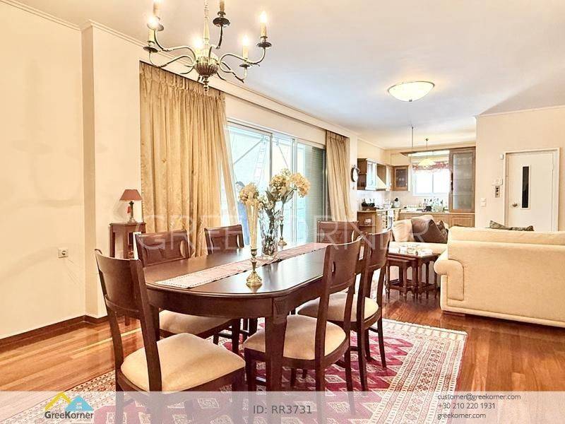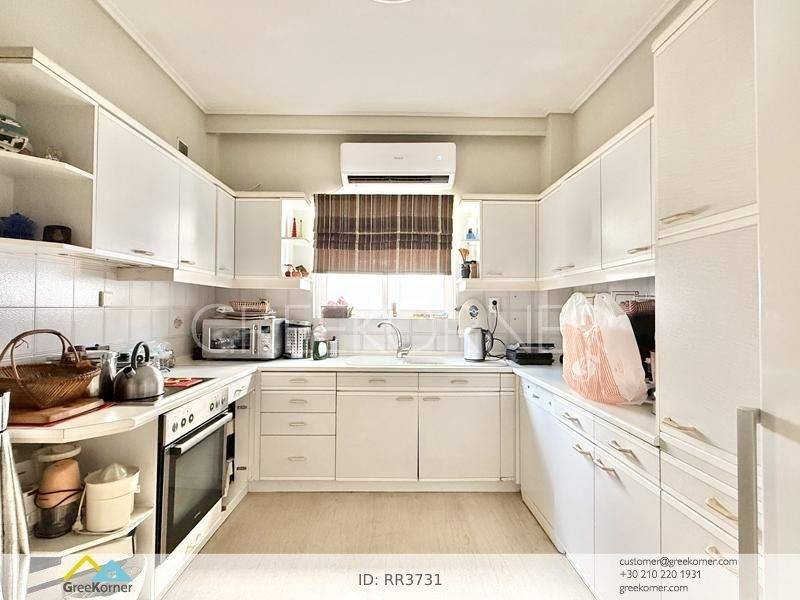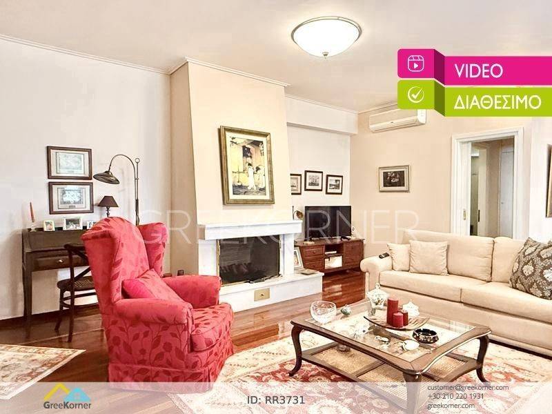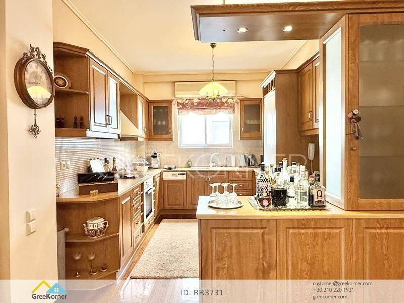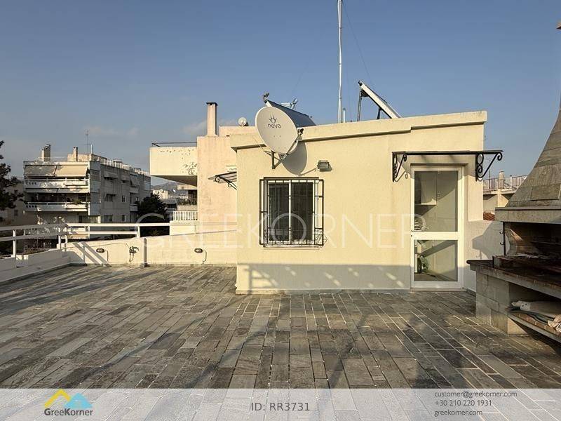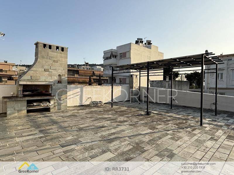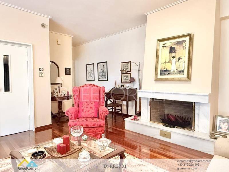 Agia Paraskevi (Attica - Northern Suburbs) - Full floor Maisonette 180sqm bedrooms 3, levels 2, 1st - 2nd, excellent condition, year built 1987, energy class E, living room, hall, 2 kitchens, 2 bathrooms, wc, heating type: autonomous (oil), air condition, parking open space, quiet, dual aspect apartment, luminous, frontage, painted, solar heater, boiler, fireplace, balconies, large balconies, balcony 50sqm, tents, elevator, garden, private terrace, terrace 90sqm, built in appliances, aluminum frames, double glazed windows, wood & marble floors, without common charges, three phase electricity, secure door, alarm, video doorbell, luxurious, internal staircase, barbeque, cloakroom, internal elevator, within city plan, residential zone, access from asphalt, close to university/college (up to 1000m), close to school (up to 500m), close to market (up to 200m).