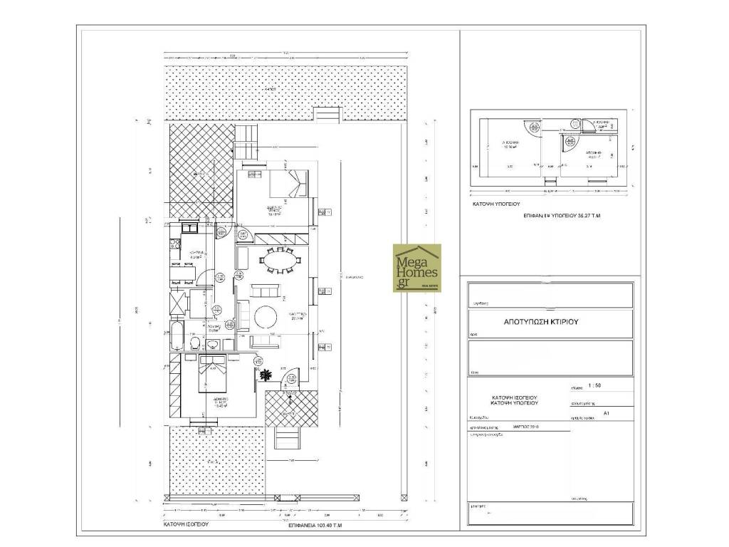 Cholargos Center Detached house 145 sq m. built in 1960. It is in relatively good condition but with a small-scale renovation permit it can be transformed into a modern residence. The residence consists of an elevated ground floor of 110 sq m. with 2 bedrooms, bathroom, kitchen, living room, sitting room. There is a basement studio of 35 sq m. functional as well as a storage space of 15 sq m. It has two large verandas and a surrounding garden of 130 sq m. It extends on a plot of 415 sq m. with a facade of 15 m. There is a future building possibility of up to 450 sq m. It also has a large open space for three parking spaces. The feature that makes the residence special is the location, close to the market, transportation, schools and the distance of 300 m. from the Ethniki Amyna metro station.