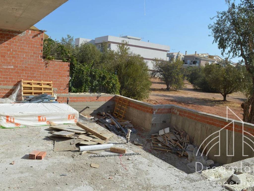 VARI Miladeza, Newly Built House 270 sqm, Ground Floor - 1st - 2nd Floor, 4 Bedrooms (1 Master), Open Plan Living Room - Kitchen, Large Playroom, 3 Bathrooms, 1 W.C., Autonomous Heating with Heating Pump, A/Cs, Fireplace, Security Door, Alarm, TV Door Phone, Indoor Staircase, Indoor Elevator, Swimming Pool, Garden, Storage Room, Closed Parking Spot, Large Veranda, Aluminum Window Frames, Double Glazed Panes, Electic Shutters, Wooden Floors, Excellent Condition, Luxurious Construction, Minimal Aesthetics, Nice Location, Quiet Area, Bright, Under Construction, Price 1.200.000 Euros (Listing Code: 4432).