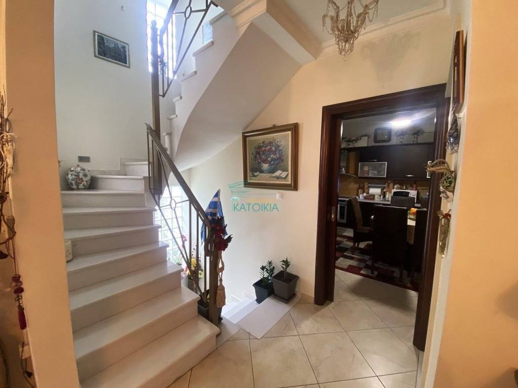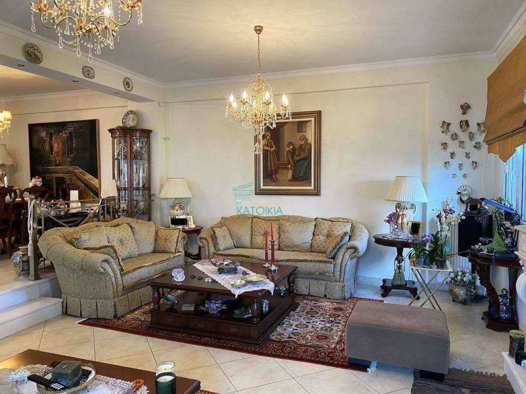 For sale is an excellently constructed detached house of 317 sq.m. in a quiet neighborhood in the area of Gerakas (Gargitos). The property extends over 4 levels served by an elevator. On the raised ground floor we have a large living room with a dining area and a fireplace. The living room opens onto a terrace. On the same level there is an independent spacious kitchen, made of high quality materials and the guest WC. On the first floor there are three bedrooms, one of which is a master with its own en suite bathroom. The second floor is the attic with an independent room, a living room and an open kitchenette. The attic opens onto a large terrace with a barbeque. The semi-basement area has two storage rooms and is connected to the closed garage area. In addition, on the same level there is an independent apartment with its own entrance, a spacious living room with a fireplace, an open kitchen, a full bathroom and a separate bedroom. The property is in excellent condition, built with very good materials and ideal to serve the needs of a family. The elevator serves all four levels. It has a solar water heater and its energy class is B. Price 760.000€, code 58643