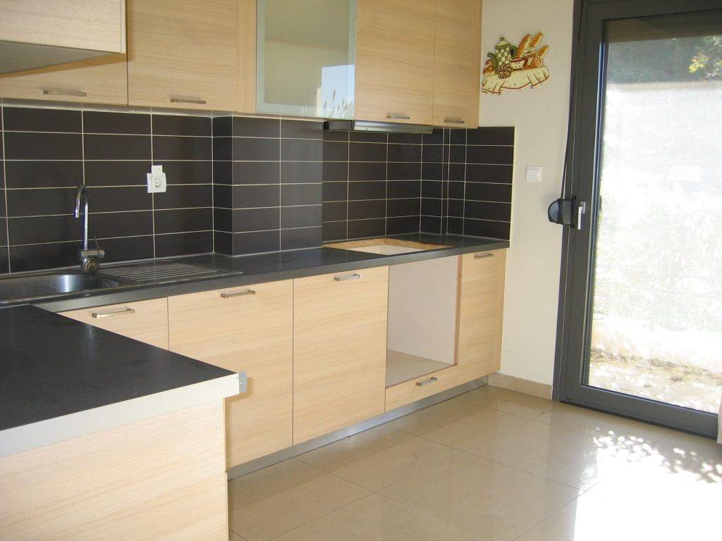 Neo Rysio, on a nice location on the edge of the settlement. In a complex of 3 houses, an independent maisonette is for rent 165 sq m on 3 levels plus 30 sq m of attic. It has a large garden and 3 open parking spaces. The basement, (Ground floor from the front), is like an independent apartment. With an independent entrance It has a living room, 2 bedrooms, a bathroom and a small storage room. The ground floor, where the main entrance is, there is a living room with a fireplace, the kitchen, and a WC. On the 1st floor there are 3 bedrooms, all with balconies, a bathroom and access to the attic with a regular staircase. The attic is bright, spacious and has storage spaces. The house is of excellent construction with heavy-duty exterior frames, with screens, wardrobes and armored doors. It has autonomous heating, with an oil burner in an external boiler room and thermostats for autonomous operation per level.