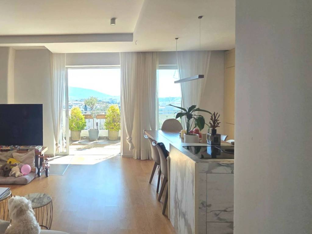 ​Luxury 5th Floor Penthouse in Marousi – Minimal Design & Unobstructed Views and natural light Year of Construction: 2002 | Renovation: 2023 Level: 5th Floor (Penthouse) ​Price: €480,000 ​Property Description ​A unique penthouse apartment in the heart of Marousi is available for sale. Fully redesigned in 2023, the property emphasizes high aesthetics and technological excellence. This was not a simple cosmetic refresh but a radical reconstruction, including the complete replacement of all plumbing and electrical installations (new electrical panel, wiring, and piping). ​Key Features & Technical Specifications ​Heating & Comfort: State-of-the-art underfloor heating system with thermal cables, featuring full autonomy in every room. The floors are finished with high-quality wood, providing energy efficiency, a premium sense of warmth, and a minimal aesthetic free of radiator units. ​Gourmet Kitchen: Ideal for culinary enthusiasts. A fully equipped built-in kitchen featuring Siemens appliances and a designer built-in refrigerator. All cabinetry mechanisms are by the German house BLUM, including a 4-drawer plexiglass tower and a specialized tower unit with integrated drawers for coffee machines and small appliances. The centerpiece is the Elica - NIKOLA TESLA ONE (85cm) induction hob with an integrated downdraft extractor (valued at €2,900). The space includes a 1.90m solid oak table (4cm thick). ​Designer Bathroom & WC: The WC features a custom-made vanity with a copper sink and premium Italian Marazzi tiles (valued at €130/sq.m.). ​Layout: 3 Bedrooms. One bedroom features an impressive 3 sq.m. window, providing abundant natural light—ideal for a home office. A specially designed hidden laundry closet (outside the bathrooms) accommodates the washer, dryer, and detergent storage. 4 out of the 5 closets are built into the central hallway, making the bedrooms feel more spacious and cozy. ​Views: Unobstructed panoramic North-facing views (protected from future construction due to zoning restrictions), extending from the OTE Building, Athens, and Mount Hymettus to the OAKA Stadium, The Mall, and Pefki. ​Additional Amenities ​Fireplace Ready: Pre-installation for a fireplace is available. ​Outdoor Space: Large main veranda plus an additional balcony. ​Storage: A large, renovated 13 sq.m. storage room equipped with shelving. ​Parking: Private parking space with a separate entrance. ​Home Gym: Option to include a full luxury multi-gym (valued at €5,000) upon request. Hidden warm lighting in all the rooms with dimmable remote control. ​Location ​The property is strategically located in a quiet residential neighborhood of Marousi, offering the serenity of a penthouse with immediate access to major shopping centers (The Mall Athens, Golden Hall, Avenue) and the Attiki motorway. It is situated just 600m from The Mall and Neratziotissa Station. Walking distance from schools, and high street.