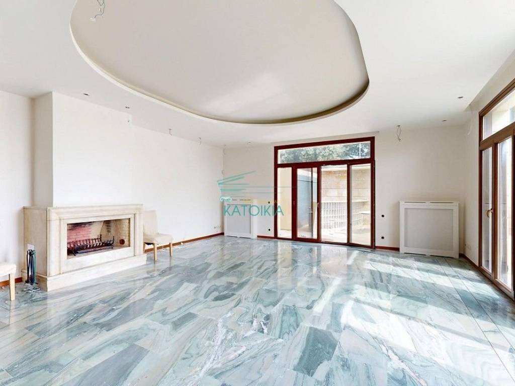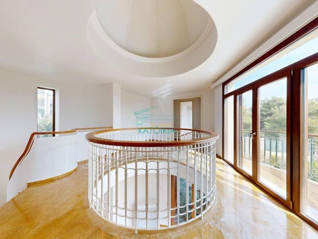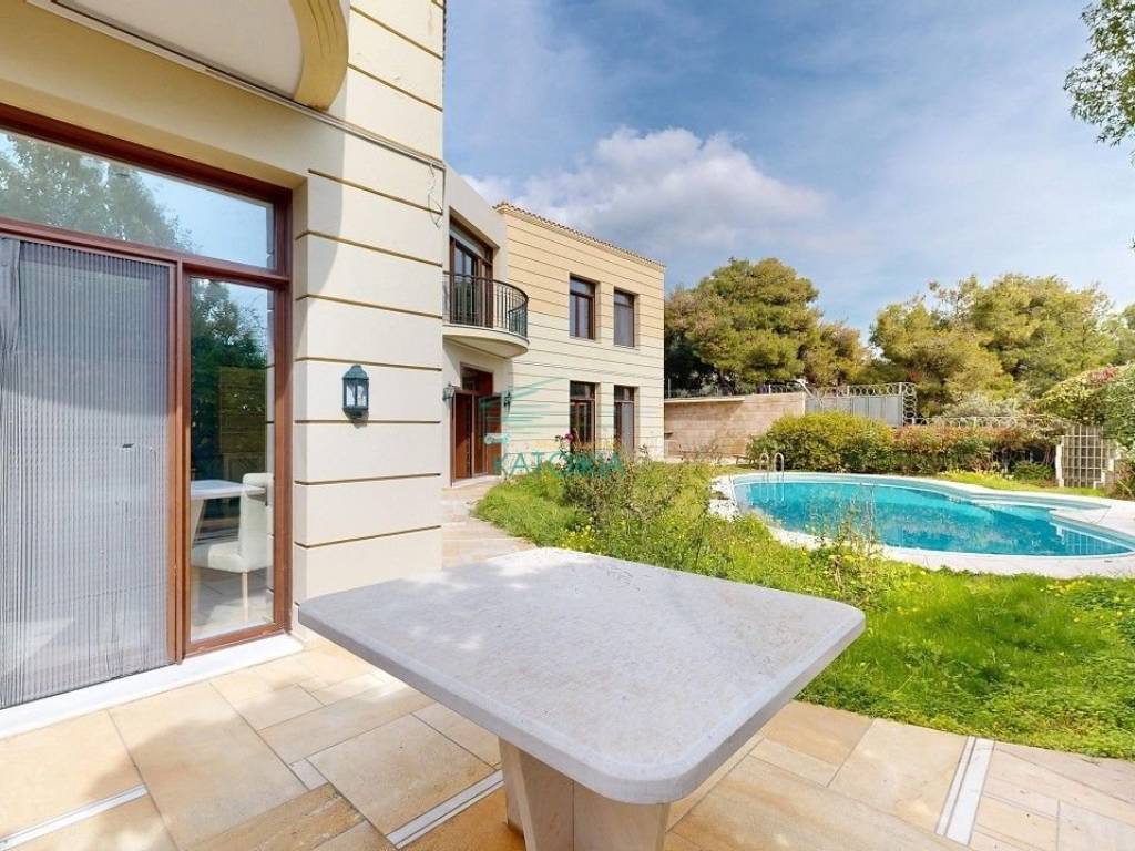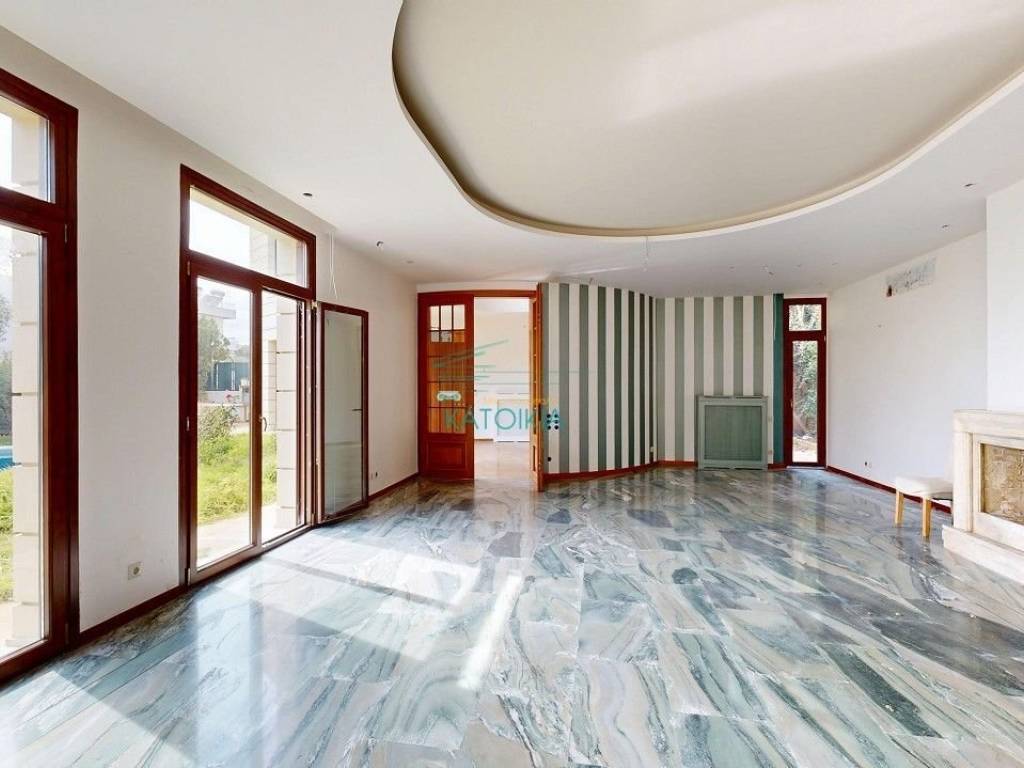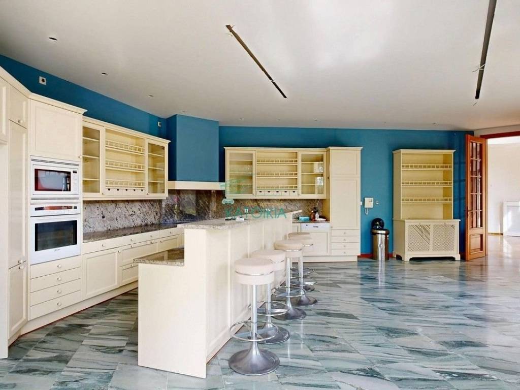 Vouliagmeni, in quiet road and beautiful location with sea -mountain and greenery views, high standard and luxurious neoclassical villa, constructed in 1997, total surface 557sq meters ( primary spaces 424,74 sq meters uper ground floor, 1st floor and a' basement, auxiliary spaces 132,50 sq meters, a' basement and b' basement-parking) beautiful garden of 625,80 sq meters and pool of 57,13 sq meters. The detached villa is located above street level ,very bright, with a lot of windows and balcony doors. Offers really spacious living room and dining room at the uper ground floor, fireplace, large kitchen, marble floors and magnificent circular staircase , 3 large bedrooms with wooden floors at the 1st floor, 1 master with fireplace, sea view walk in closet, 2 bathrooms, kitchenette, balconies, maid's room ,bathroom at a' basement and playroom 40 sq meters total , plus 88sq meters auxiliary spaces ( storage ,laundry, engine room etc) At the garden there is barbecue and bar , pool shower and toilet facilities ( 12 sq meters) , plus parking of 44.50 sq meters at basement b' The property is quickly accessible to the center of Vouliagmeni and is immediately available. Price 4.450.000€, code 58634