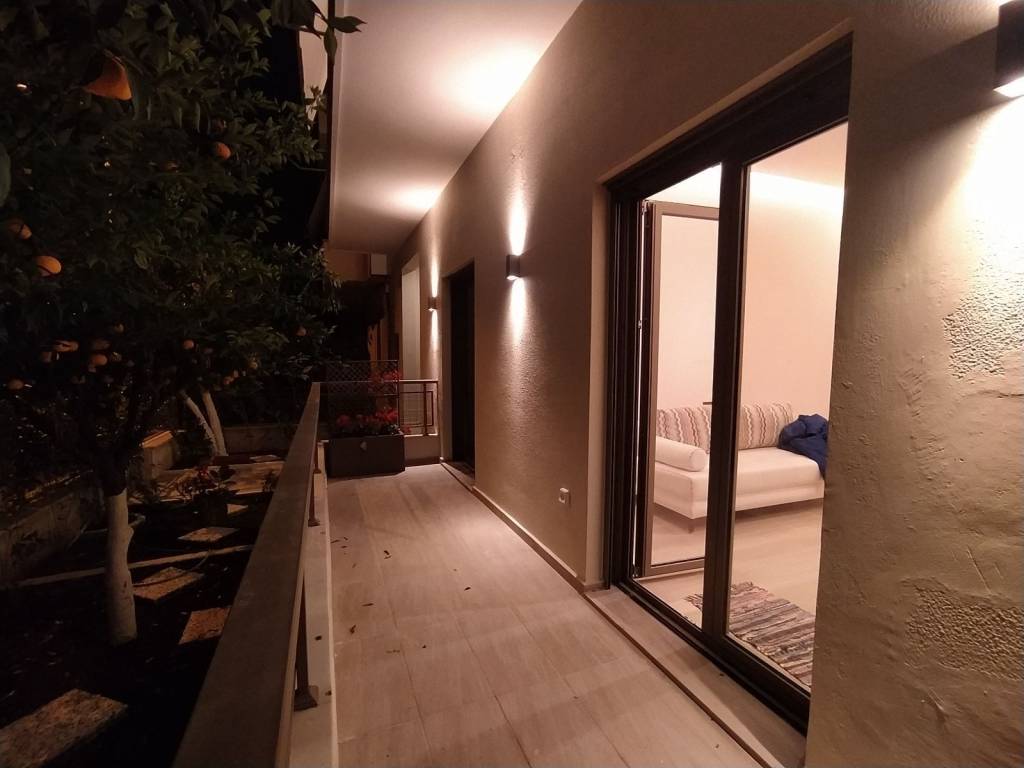 Οροφοδιαμέρισμα υπερυψωμένου ισογείου 90τμ. σε διώροφη οικοδομή με δικό του κήπο. Αποτελείται από: δύο δωμάτια, κουζίνα, σαλονοτραπεζαρία, μπάνιο με παράθυρο, wc, μεγάλες βεράντες, αποθήκη. Διαθέτει: αντλία θερμότητας Daikin, ηλιακό θερμοσίφωνα, πόρτα ασφαλείας, ψηφιακές εκτυπώσεις στην κουζίνα, ψευδοροφή με κρυφούς φωτισμούς, εντοιχισμένες ντουλάπες με μηχανισμούς, κουφώματα αλουμινίου/άθραυστα τριπλά τζάμια/σίτες, καινούργιο διακοπτικό υλικό, ξύλινο δάπεδο δρυός με πλάτος σανίδας 18cm. Το διαμέρισμα έχει ανακαινιστεί πλήρως, βρίσκεται σε ήσυχο δρόμο, είναι διαμπερές με δικό του ακάλυπτο κήπο και δεν έχει κοινόχρηστα. Βρίσκεται 300μ από τον σταθμό μετρό Κατεχάκη. Κατάλληλο και για επαγγελματική χρήση. Το διαμέρισμα διατίθεται κατά προτίμηση για διαμονή χωρίς κατοικίδια ζώα.