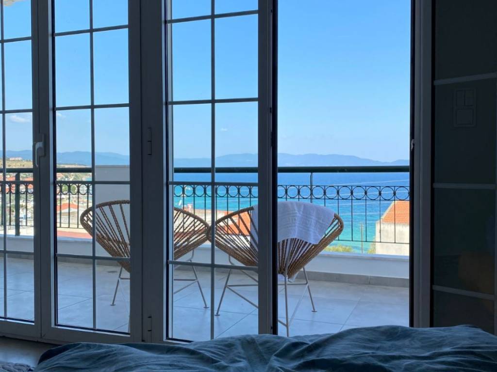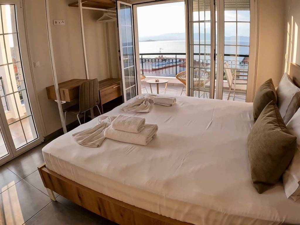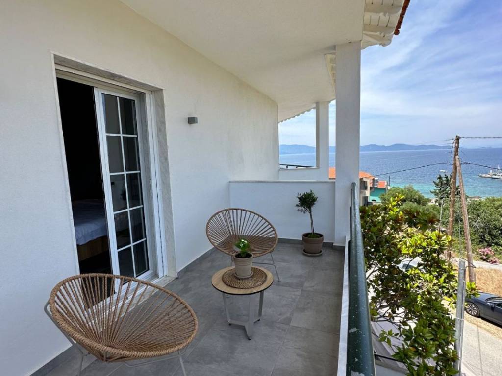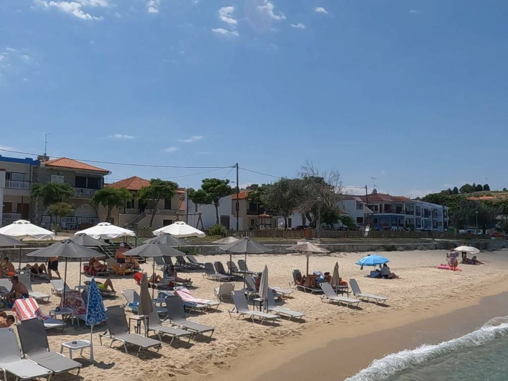 Holiday home with 14 modernly furnished apartments, all with sea views. The apartments and suites are almost fully booked for this year. The property is just 60 meters from the beach in Nea Roda and was completely redesigned and converted into 14 holiday apartments in 2022. Everything was renovated and modernized according to the latest design standards, in compliance with all legal regulations. All floors are finished with modern porcelain stoneware. The windows are double-glazed and made of aluminum. The toilets are all located behind partition walls, and the showers are spacious, glass-enclosed, walk-in, and barrier-free. Guest comfort was a top priority from the outset. There are ample light switches and electrical outlets on each side of the bed. Everything is uniformly modern and decorated in a consistent color scheme. There is also a laundry room with washing machines and dryers, as well as two emergency water tanks with pressure pumps that ensure consistent water pressure throughout the building. Two large hot water tanks are located on the roof as a precautionary measure. Hot water is supplied via solar panels. All interior doors are soundproofed and equipped with automatic locking systems. All apartments have Wi-Fi access and connections for satellite TV and internet throughout Europe. Common areas and access roads are under video surveillance. The entire building is equipped with smart home technology and can be monitored remotely. It is fully furnished with high-quality furniture, large beds, kitchens, and household appliances. All apartments have air conditioning and large balconies with direct or partial sea views. Parking is available around the building, as well as a garage for the owner. All necessary documents and permits are in place, and the property boasts an excellent clientele. The property is ideally suited for renting apartments and suites to vacationers. Suites are available for up to two people, and apartments with two separate bedrooms can accommodate up to four people. The rooms range in size from 20 to 70 square meters and are spread across three floors. Most offer stunning views of Nea Roda Bay. The center of Nea Roda, with its numerous restaurants, is just a short walk away. The beautiful sandy beach and crystal-clear water are less than a minute's walk. The house offers a total of 730 square meters of living and usable space. The actual living space is approximately 500 square meters spread over three floors. The property comprises approximately 380 square meters. Everything is ready for the upcoming season and can be operated immediately. It's an ideal property for either renting out or for building your own business.