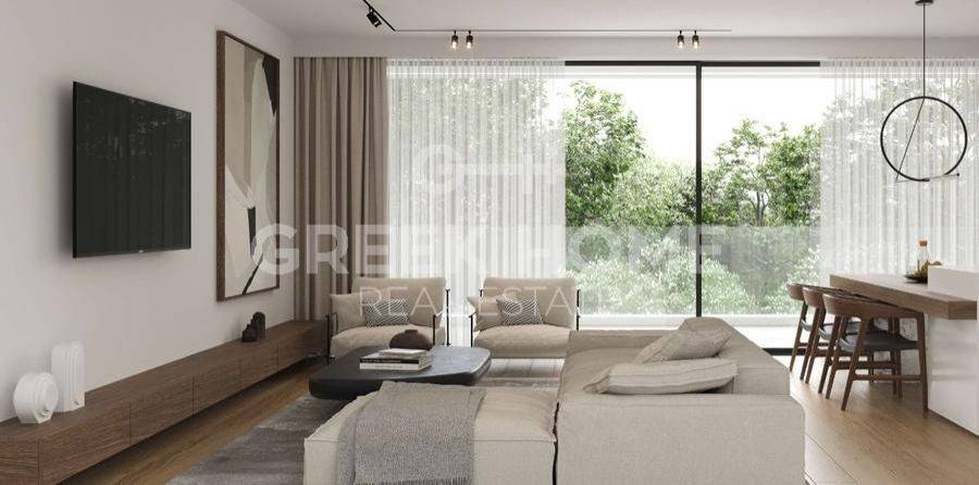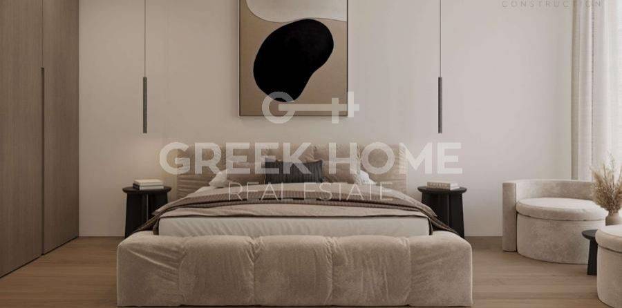 Glyfada, Gkolf - Apartment 129sqm bedrooms 3, 2nd (129sqm), under construction, constructionstage concrete, year built 2026, energy class A+, living room, kitchen, 2 bathrooms, wc, heating type: autonomous (heat pump), air condition, parking covered,2, quiet, dual aspect apartment, luminous, unobstructed view view, frontage, painted, storage space, external thermal insulation, fireplace, balconies, large balconies, balcony 37sqm, elevator, thermal shut-off frames, double glazed windows, door screen, wood floors, handicap ramp, secure door, alarm, video doorbell, luxurious, solar panels, ev charger, internet, pets allowed, south-eastern orientation.