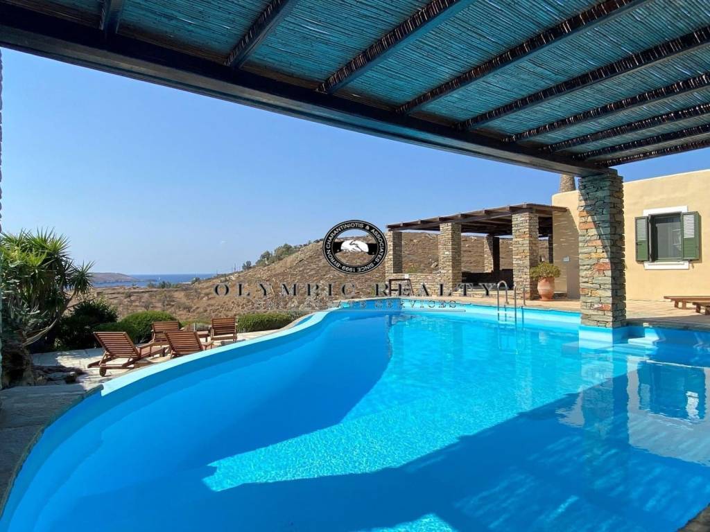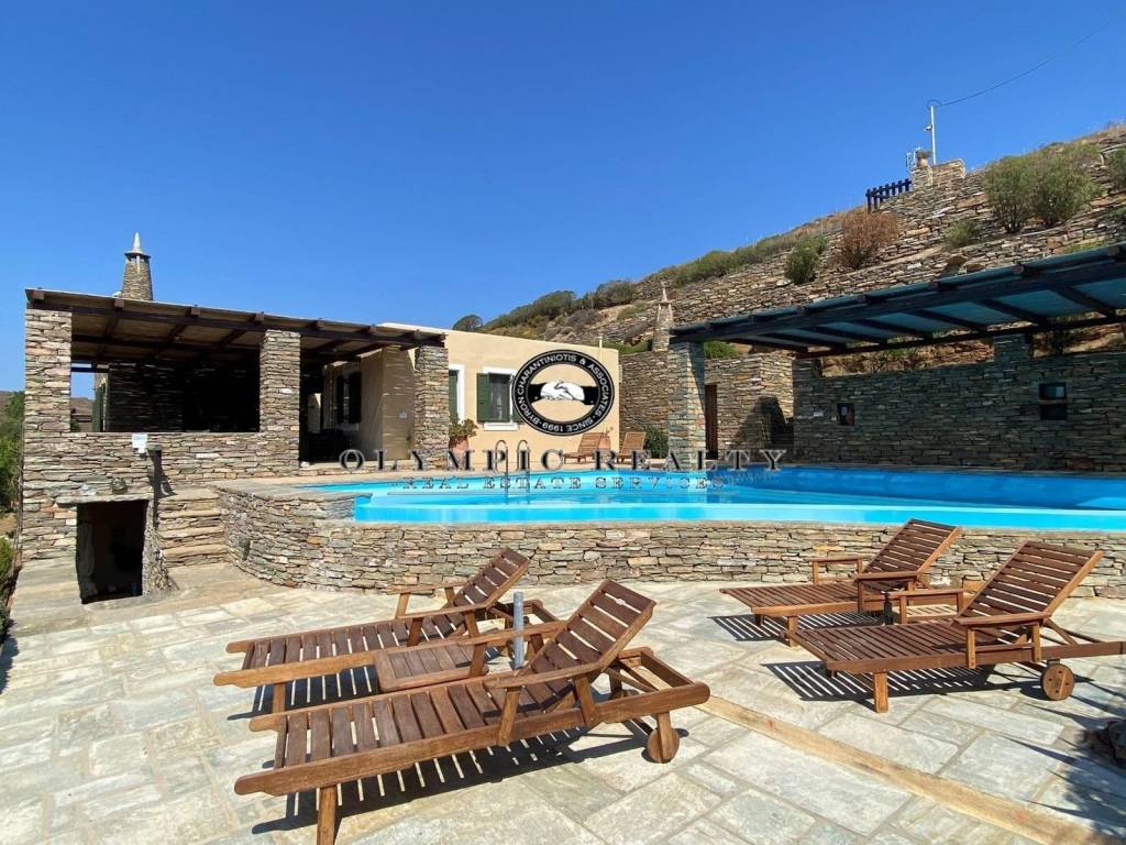 This magnificent villa is located in the northwestern part of Kea (Tzia) Island, just one hour by boat from Athens Lavrio port. Built on an amphitheatric point of the bay, it has been carefully designed to blend harmoniously with the natural landscape, offering a serene and peaceful environment far from the crowds, with views of the sea. The villa is just 10 minutes away from the port and 7 minutes from Vourkari, the island’s popular yachting marina, which offers cafes, restaurants, taverns, bars, and shops. The nearest beach is only a few minutes away, and the island boasts a selection of beaches with crystal-clear waters. The property is a four-season residence in traditional island style, with a total living area of 296 square meters on a 4,300-square-meter plot. Constructed with natural materials-including stone quarried directly from the site, wood, cement mortar, and marble-the villa integrates beautifully with its surroundings. Inside, the atmosphere is idyllic. Large, airy openings are thoughtfully positioned to frame stunning sea views, seamlessly connecting the interior living spaces with the expansive outdoor areas and the swimming pool directly in front of the villa. The villa is spread over two levels and includes a spacious living room, an ergonomic and well-equipped kitchen, four bedrooms (including one master suite), and a fully autonomous guest house with its own kitchen. Amenities include air conditioning in all rooms, a central heating system with radiators, a fireplace, an alarm system with closed-circuit cameras, aluminum window frames with double glazing, shutters and insect screens, built-in electrical appliances, and more. The outdoor area features a 75-square-meter swimming pool and a variety of tranquil terraces situated around the villa. A professionally designed tennis court with a high fence adds to the appeal, especially for sports enthusiasts. The sloping plot has been terraced for easy access and is planted with olive trees, fruit trees, shrubs, and ornamental plants. The entire property is enclosed by a stone wall with gated entries and a garage door providing access to parking areas. The residence is meticulously maintained and move-in ready. Code: 3276