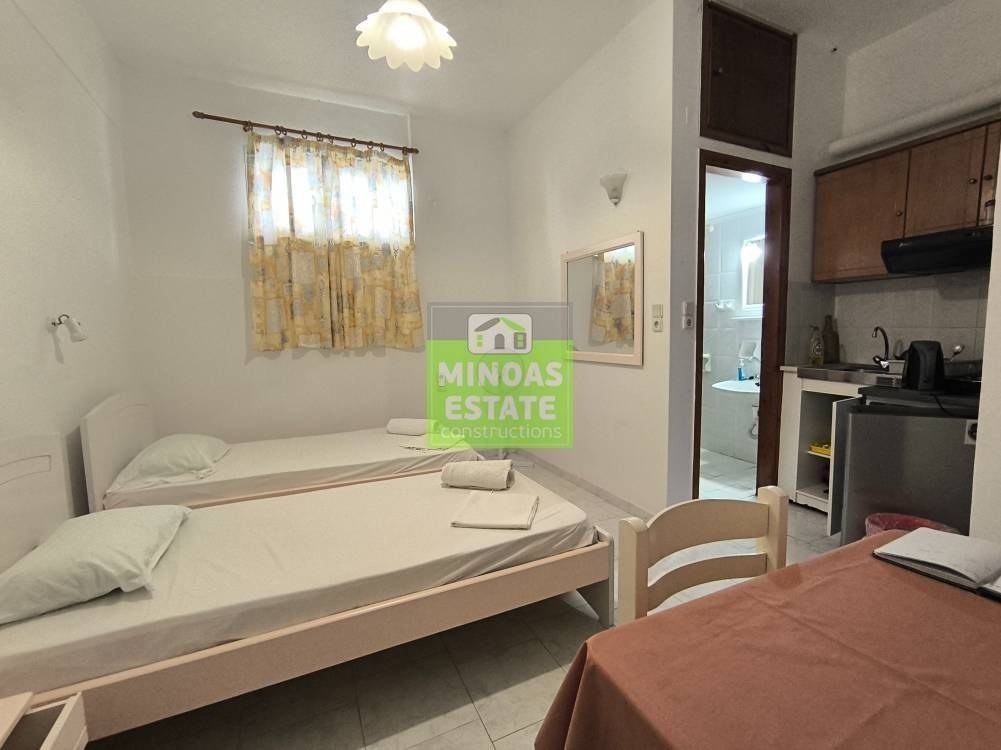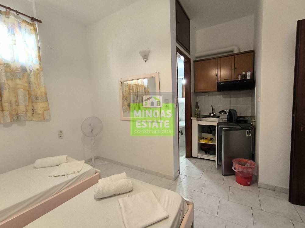 Nea Kydonia, Kato Galatas: Studio for rent 30 sq.m. on the ground floor without heating. It consists of a single living room-kitchen-bedroom, and bathroom. It is fully furnished, equipped, with electrical appliances, built in 2005, painted, close to SCHOOLS-PHARMACY-SUPERMARKET-BEACH and has tiled floors, solar water heater. It is ideal for workers (and cohabitation). Free Amenities: internet. Price 750€ (available from 12/3/2026-30/10/2026 with contract) Free internet services / Extra water charges 15 euros per person and electricity in the name of the tenant. | Property Code: #E-201112
