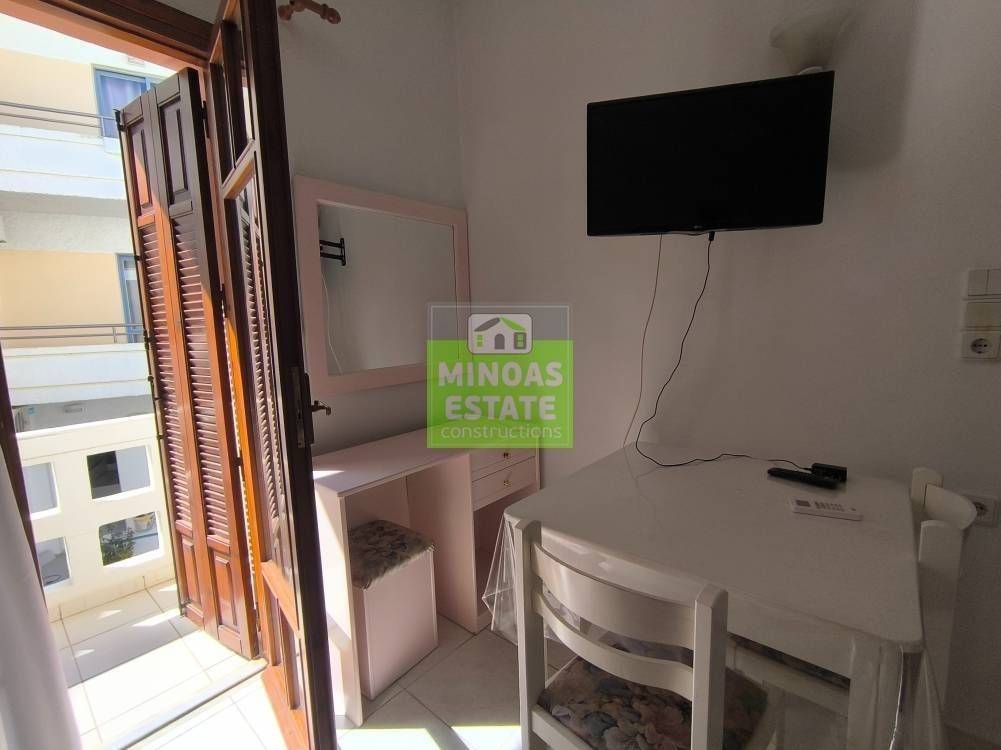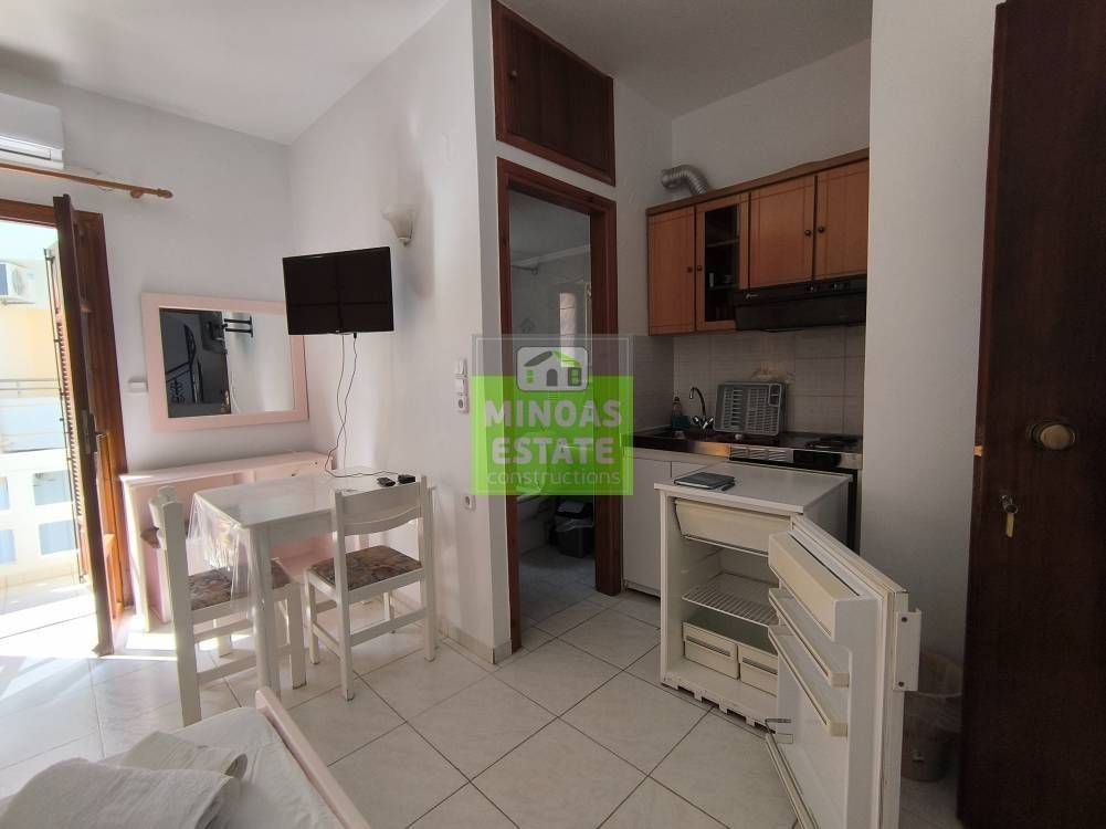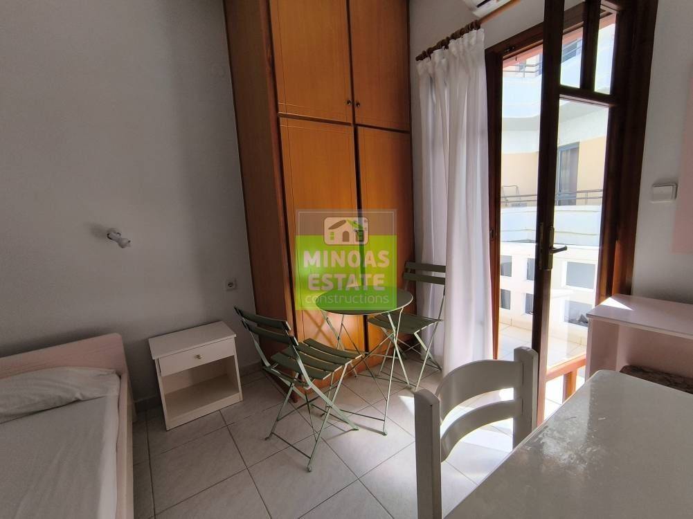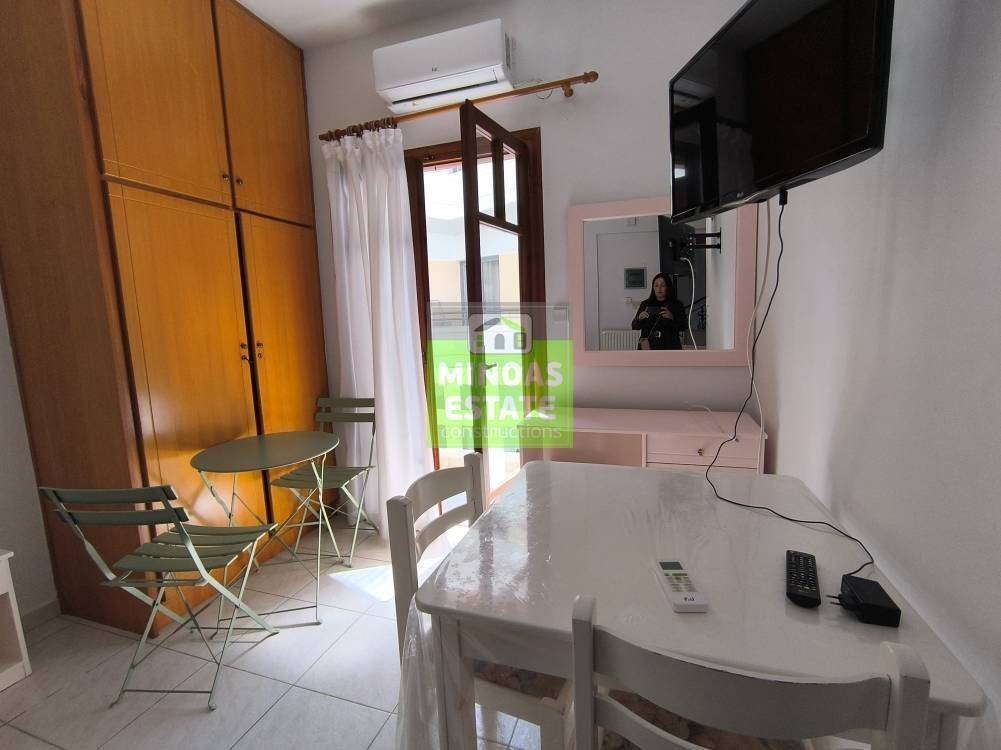 Nea Kydonia, Kato Galatas: One-room Studio 30 sq.m. for rent. on the 1st floor without heating. It consists of a single bedroom-living room-kitchen area, and a bathroom. It is fully furnished, equipped, with electrical appliances, built in 2005, painted, close to SCHOOLS-PHARMACY-SUPERMARKET and has tile floors, solar water heater. It is ideal for workers (and roommates). Free Amenities: internet. Price 850€/Available from 12/3/2026-30/10/2026 with contract /extra charges water 15 euros per person and electricity in the name of the tenant. | Property Code: #E-201108