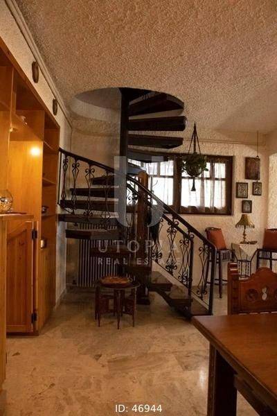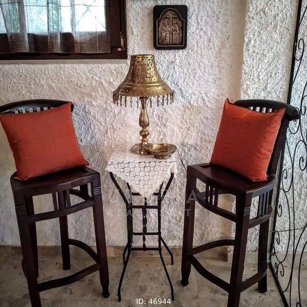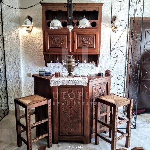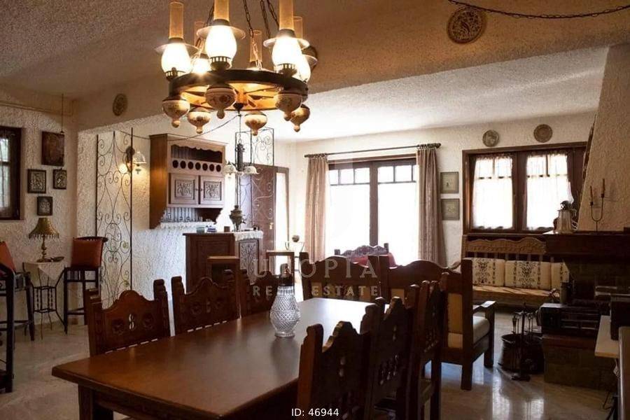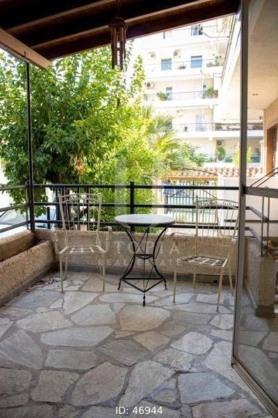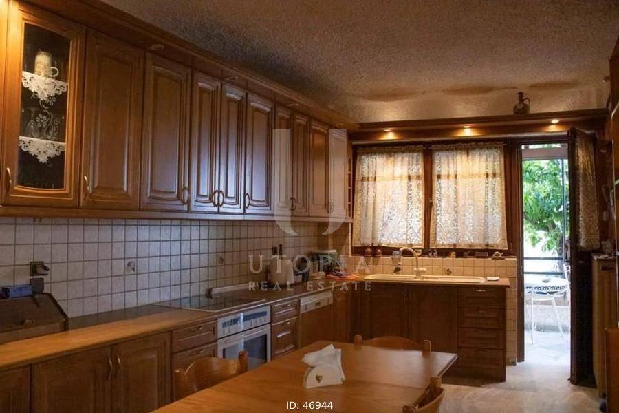 Glyfada, Terpsithea - Detached House 163sqm plot 231sqm, fully furnished, bedrooms 3, levels 2, ground floor (81sqm) - 1st (81sqm), very good condition, year built 1982, energy class Exempt, living room, hall, kitchen, 2 bathrooms, heating type: autonomous (oil), parking, quiet, dual aspect apartment, luminous, corner, frontage, fireplace, garden, wooden frames, double glazed windows, ceramic tiles floors, separate kitchen, without common charges, internal staircase, barbeque, residential zone, access from asphalt.