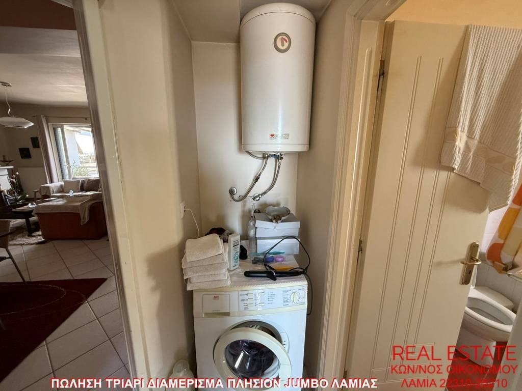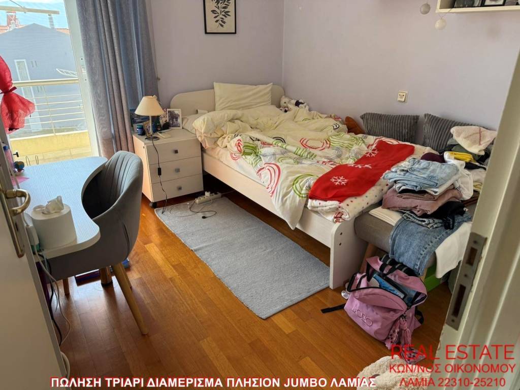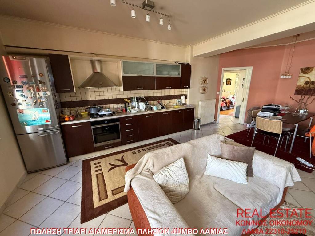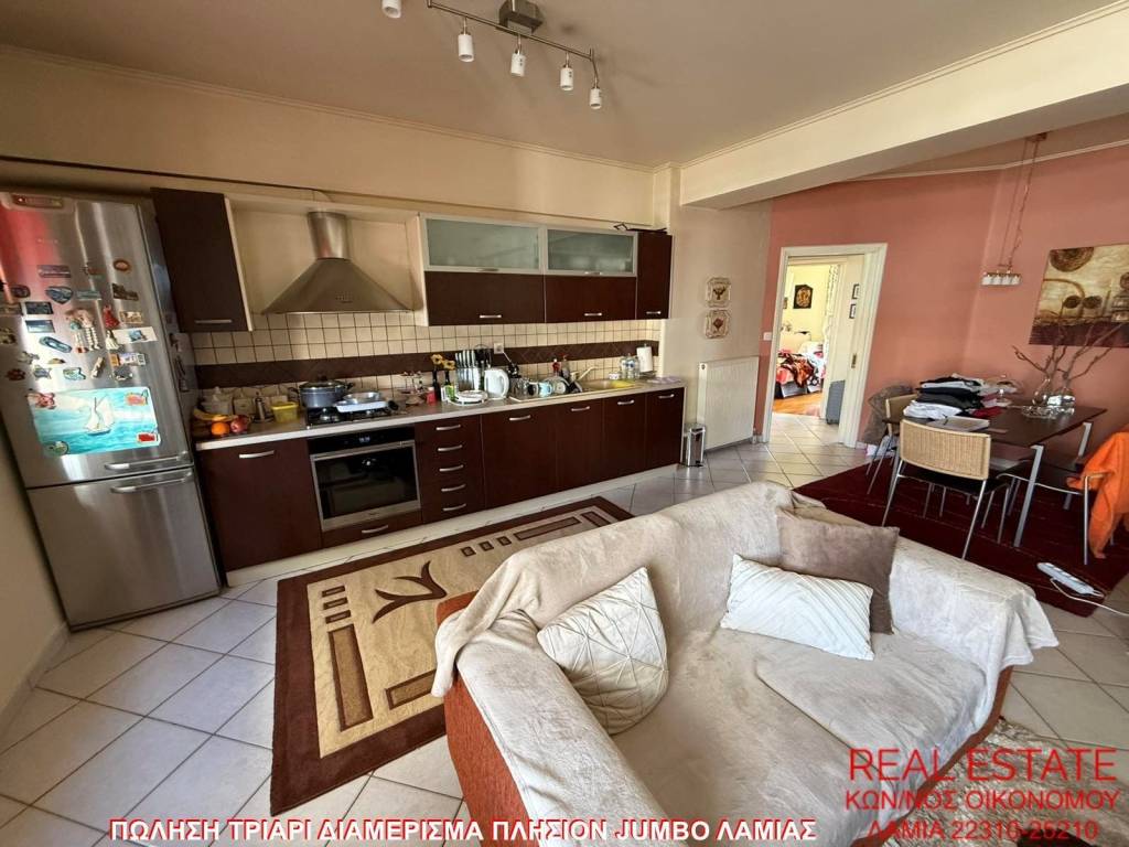 Apartment for sale, near Jumbo Lamia. It is 77 sq.m., 2nd floor, penthouse, airy and bright. It consists of an open-plan living room-kitchen, two bedrooms with large wardrobes and a bathroom. It has autonomous oil heating, fireplace, solar water heater, aluminum frames, double glazing, screens and large verandas front and back. It is located in a two-story apartment building, without an elevator. It was built in 1997 and is in excellent condition, suitable for investment. Selling price 88,500 euros.