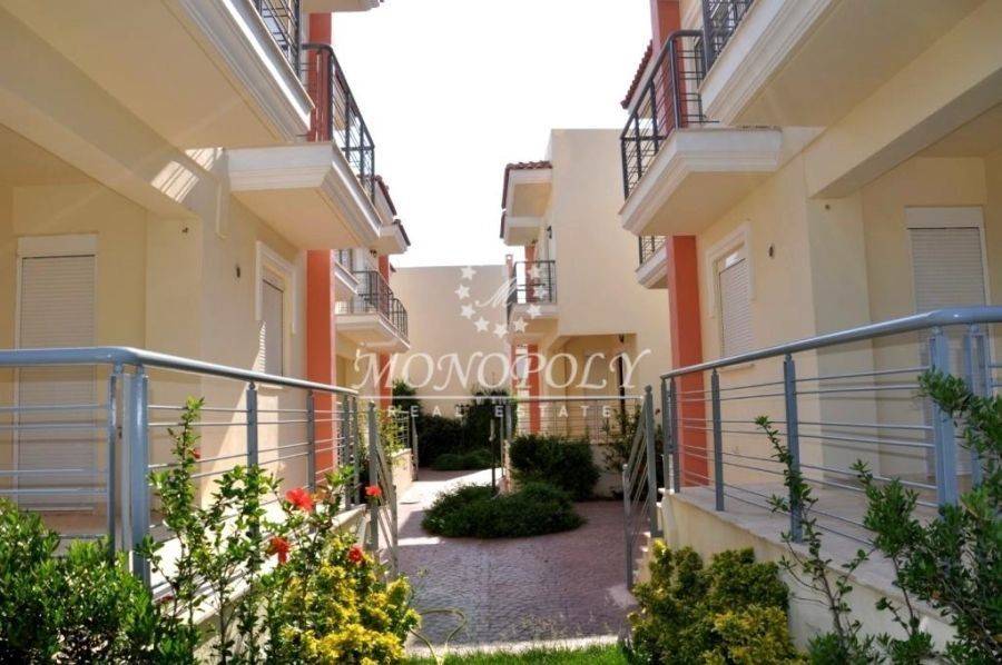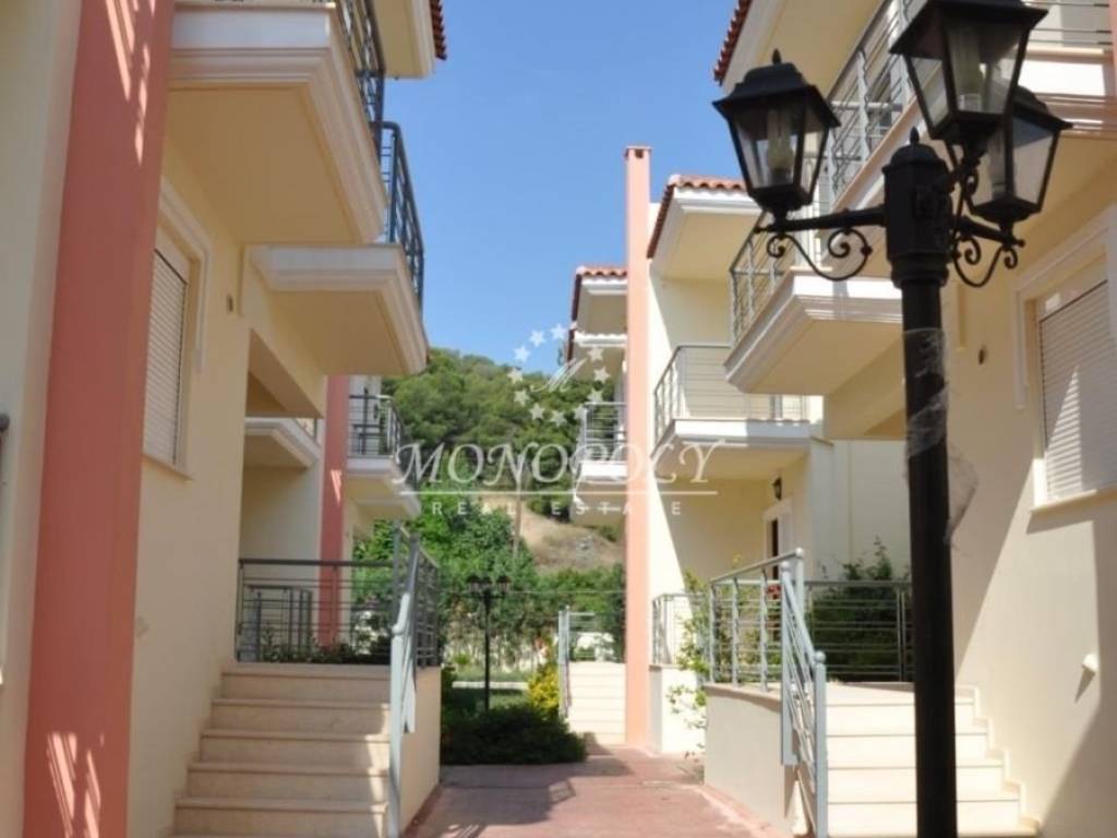 Corinth – Almyri. Detached maisonette of 112 sq.m., arranged over three levels, of excellent construction quality and ready for delivery. It is part of a residential complex of 13 homes built on a 2,035 sq.m. plot and offers exclusive use of a 525 sq.m. garden along with access to a large swimming pool. The first level features a spacious bedroom with WC as well as the boiler room. The elevated ground floor consists of a bright and comfortable living room with a fireplace, a kitchen, and a pleasant veranda. On the first floor there are two comfortable bedrooms, one bathroom, and balconies. The property includes autonomous heating, fireplace, solar water heater installation, boiler, electric shutters, analog satellite antenna, security cameras, and a storage room. High-quality materials have been used throughout, including granite staircases, INOX railings, Doussie wood flooring in the bedrooms, and Grohe bathroom fittings. In the shared outdoor area of 350 sq.m. there is an impressive illuminated swimming pool of 200 sq.m. with a depth of up to 4 meters, as well as a separate children’s pool. The property is located approximately 300 meters from the sea and an organized beach. *Property location on the map can be relevant and not accurate. *ID or Passport and TAX number are required for visiting the property, from each person that will be present.