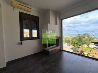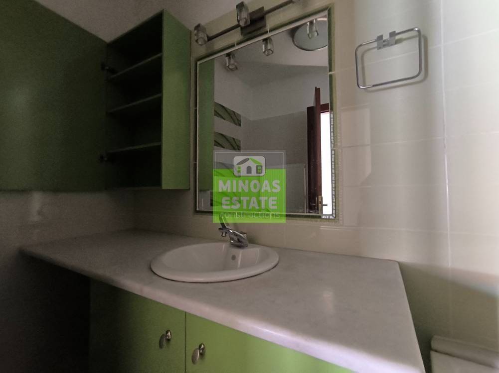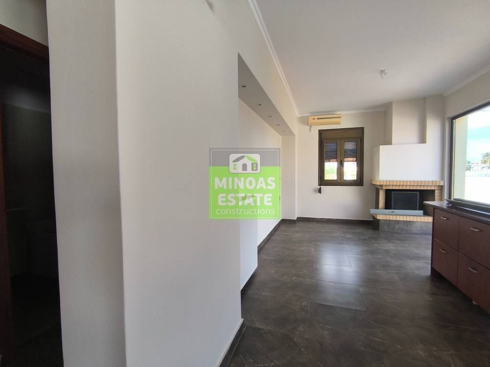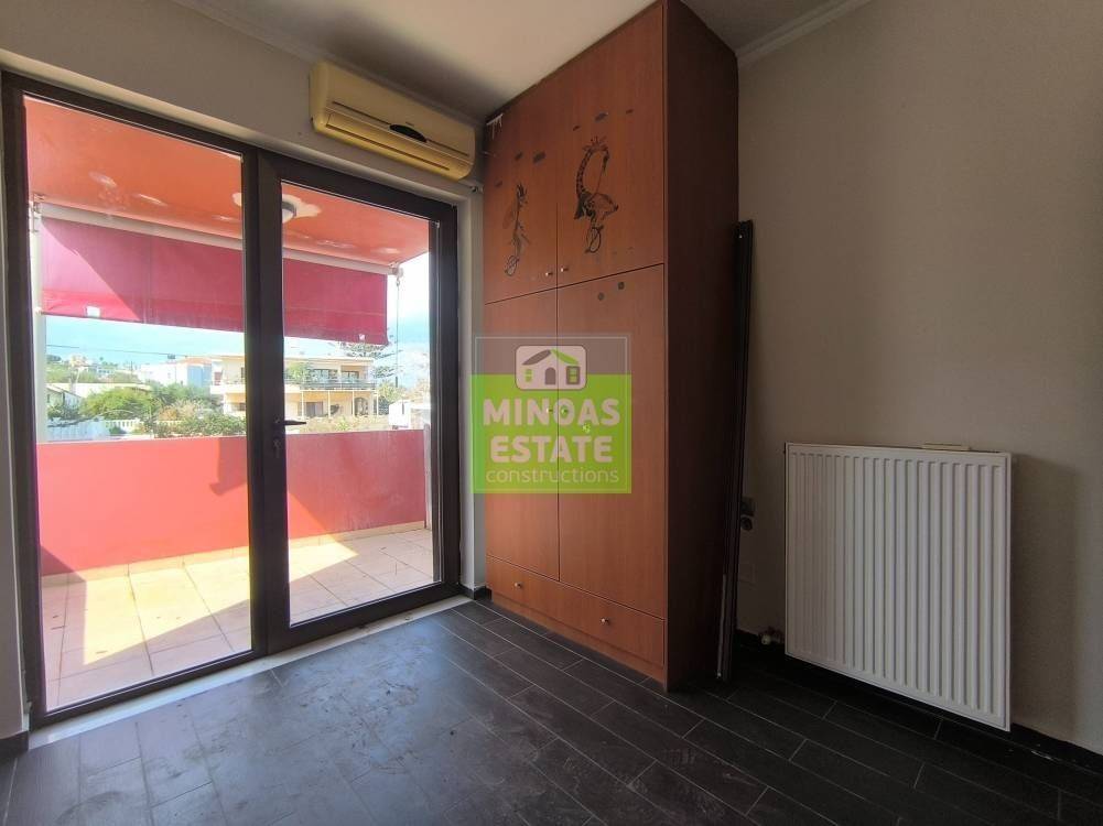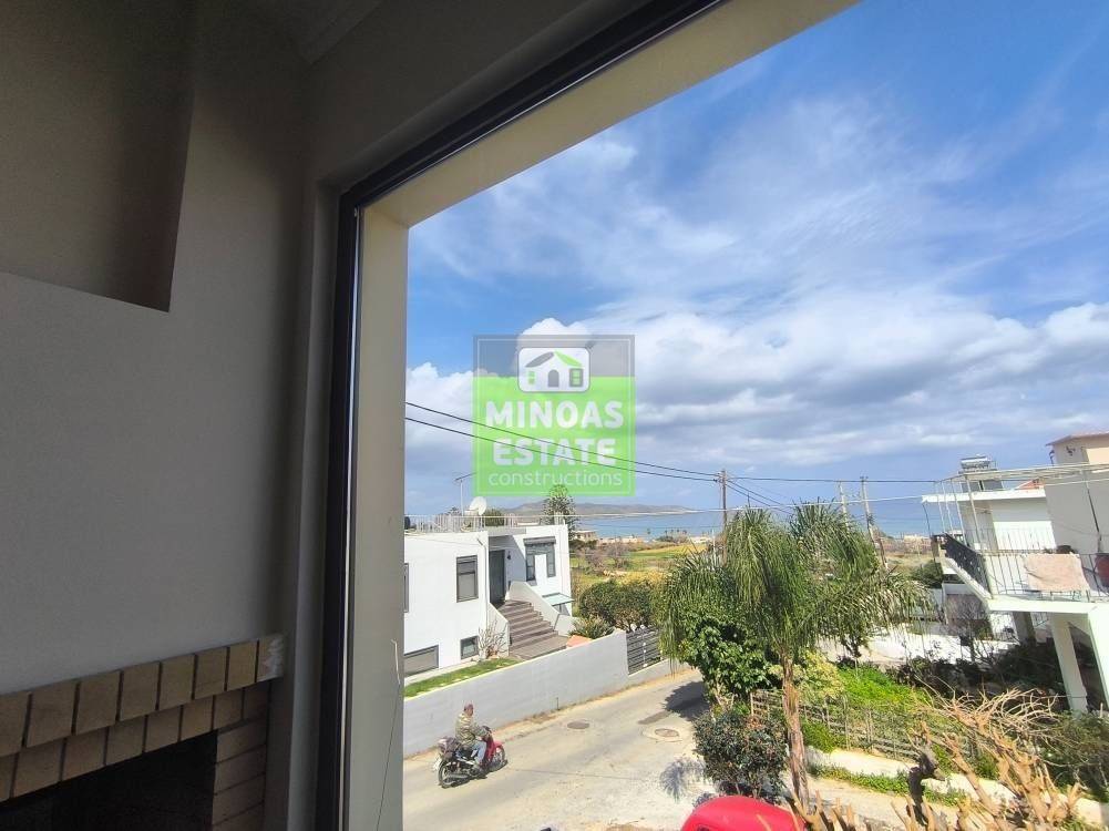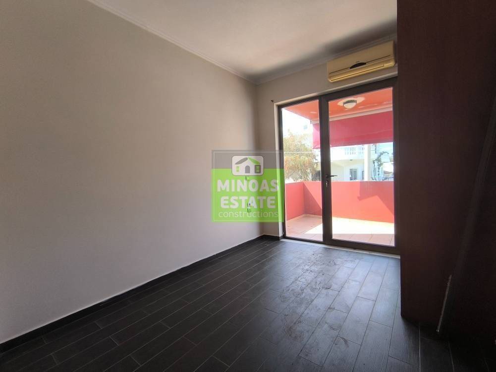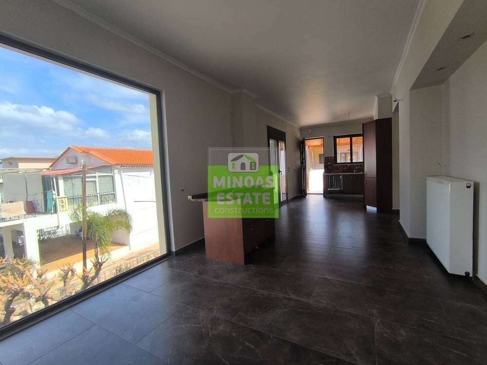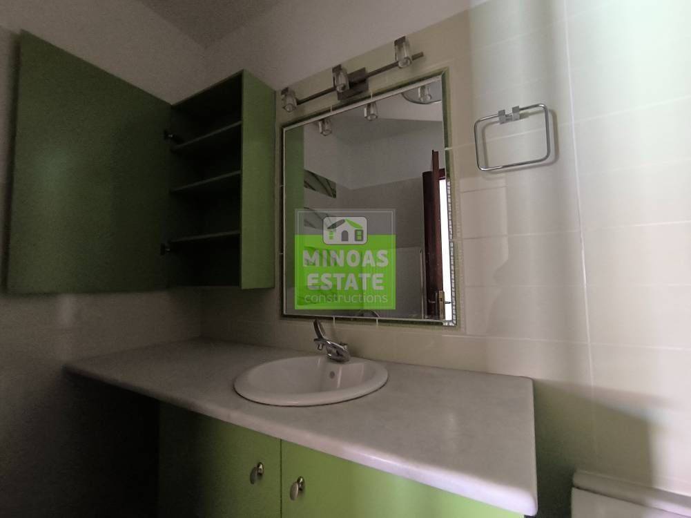 Nea Kydonia, Kato Stalos: For rent, partially renovated airy and bright Apartment 78 sq.m. facade on the 1st floor with individual heating (air conditioning and fireplace). It consists of 2 bedrooms, 1 kitchen-living room, and a bathroom. It is equipped with electrical appliances (dishes, oven, stove, oven), painted, close to SCHOOLS-PHARMACY-SUPERMARKET-SEA and has a sea view, aluminum frames with double glazing, security door, marble & tile floors, fireplace, awnings, screens, solar water heater. It is ideal for families or working people and pets are allowed. Free Amenities: internet, water. Price €850 (minimum year rental) | Property Code: #E-201080