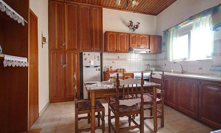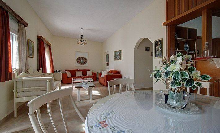 At the front of the house there is a bright balcony, ideal for relaxing. At the back there are two parking spaces as well as a private yard, which is fenced and offers peace and privacy. The residence is developed entirely on one level, making it particularly practical for elderly people or individuals with limited mobility. The interior is fully furnished and equipped with all electrical appliances. It features a spacious open-plan living room and dining area. The kitchen is subtly separated by a breakfast bar and comes fully equipped with electrical appliances, while there is also installation available for a dishwasher. It offers a large countertop workspace, and a hallway leads to the main bathroom as well as three comfortable bedrooms. New air-conditioning units have been installed both in the open-plan living area and in the bedrooms. In addition, the property includes a solar water heater, aluminum window frames with double glazing, and insect screens. The village has a traditional café and a supermarket just a 5-minute walk away. Very close by is Kolymbari, where you can find supermarkets, a bank, and various shops, as well as a beautiful beach with taverns and cafés along the coastline. Kissamos is about a 15-minute drive away and offers a full range of shops and services, while the center of Chania is approximately 30 minutes away and the airport about a 40-minute drive.