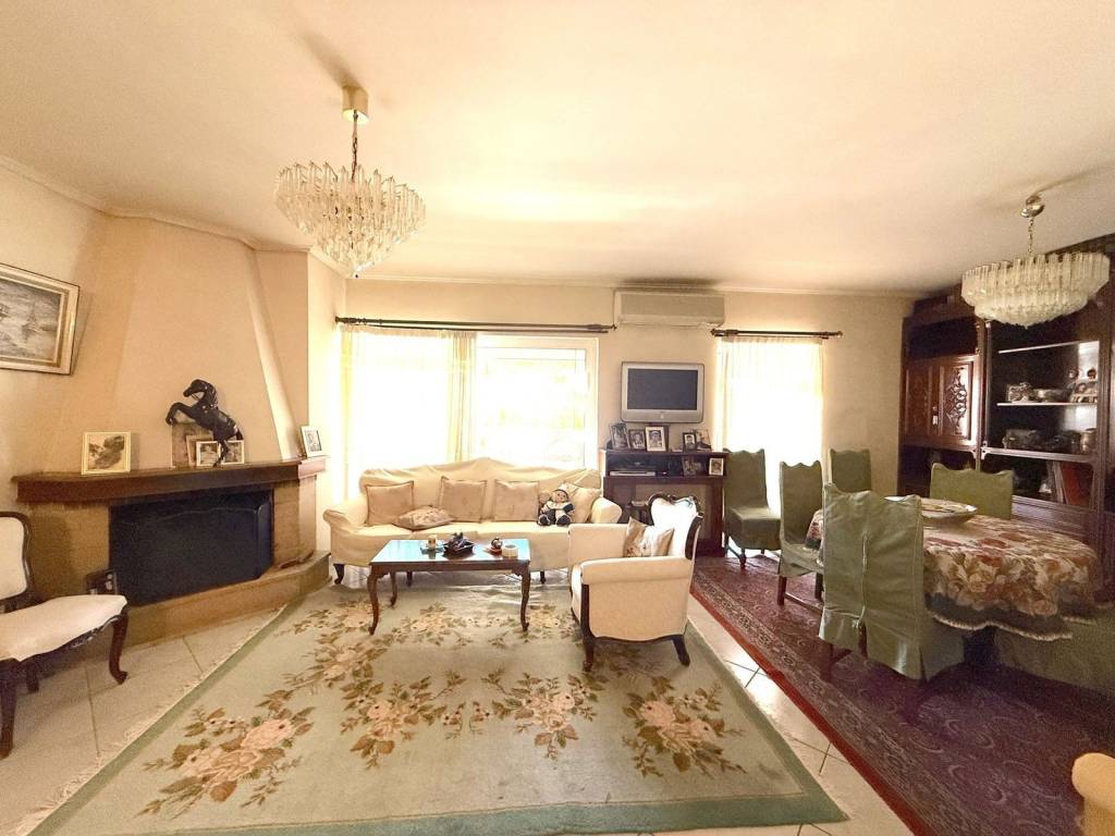 Upper Nea Smyrni – Near Stadium Park. An entire 5th-floor, 128 sq.m. apartment, in a building constructed in 2004. Offering: a spacious open-plan living area with a fireplace leading to a large veranda, 2 bedrooms (one of which is a master with an en-suite bathroom), a second bathroom, a kitchen with a pantry, a storage room, and one underground parking space.